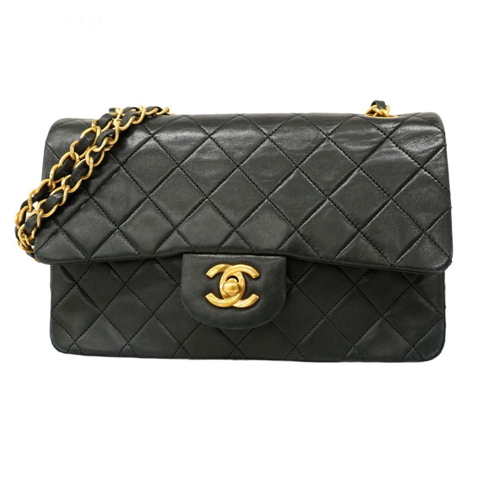 シャネル(Chanel) シャネル ショルダーバッグ マトラッセ Wフラップ Wチェーン ラムスキン ブラック レディース