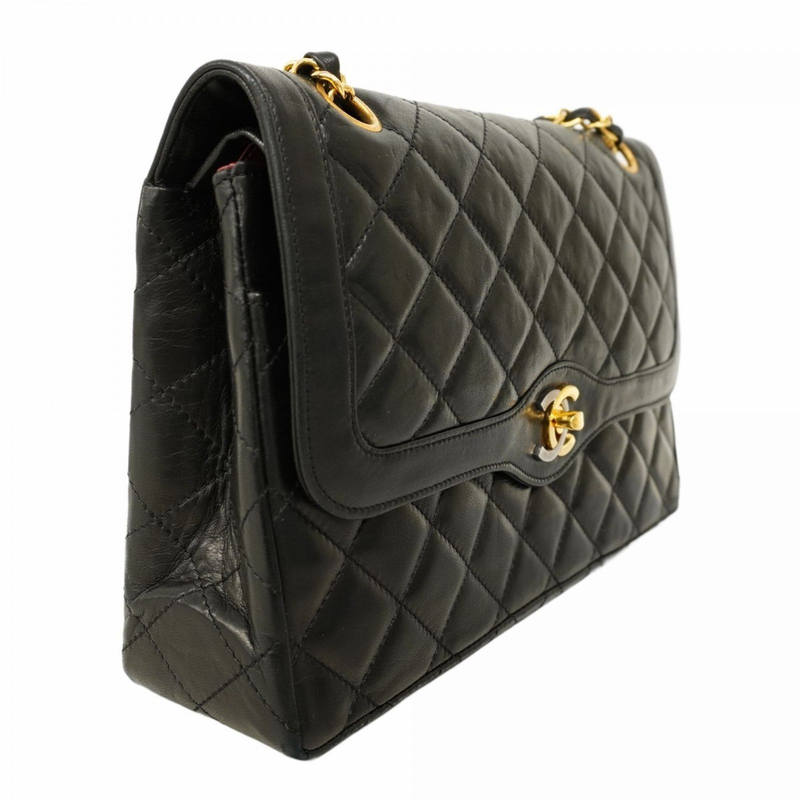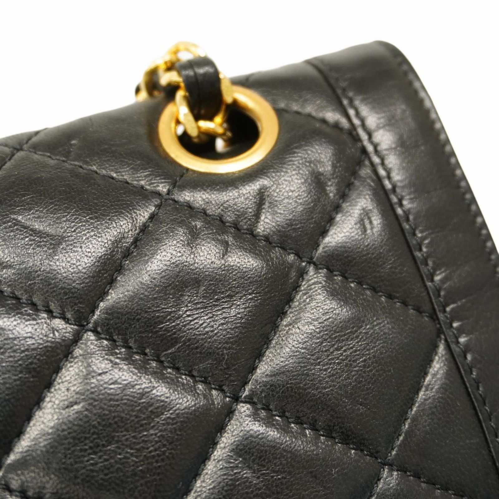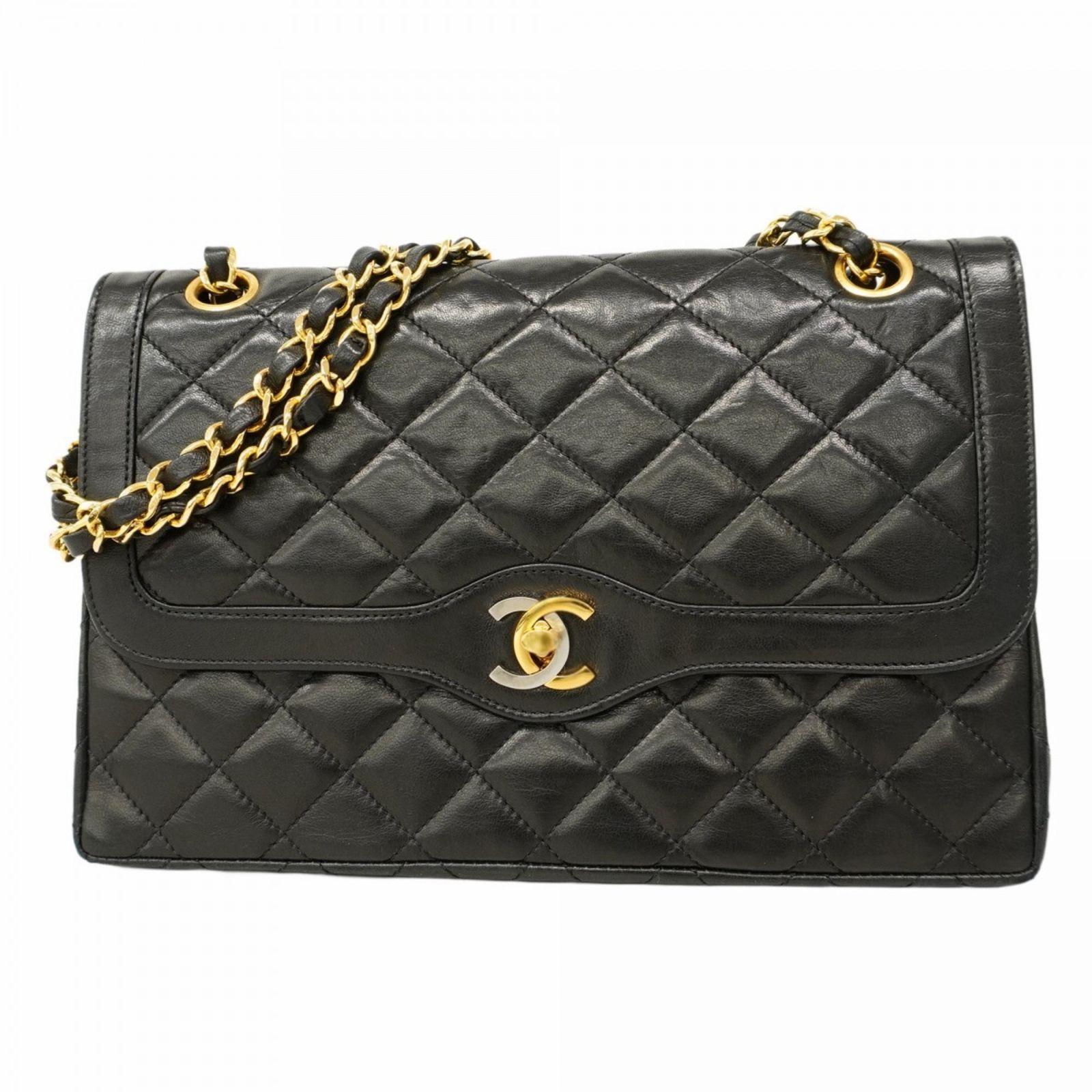 シャネル(Chanel) シャネル ショルダーバッグ マトラッセ パリ限定 Wフラップ Wチェーン ラムスキン ブラック ゴールド レディース