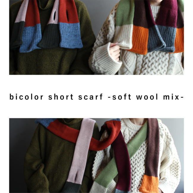 嵩張りにくく、薄手で軽くあたたかいショート丈マフラー