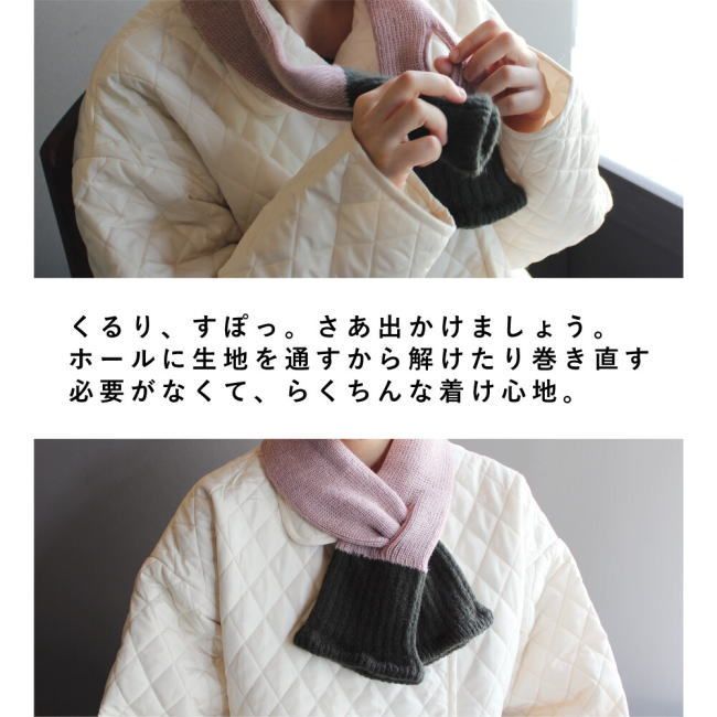 首元にくるっと巻き、通し穴付きで装着もラクラク、