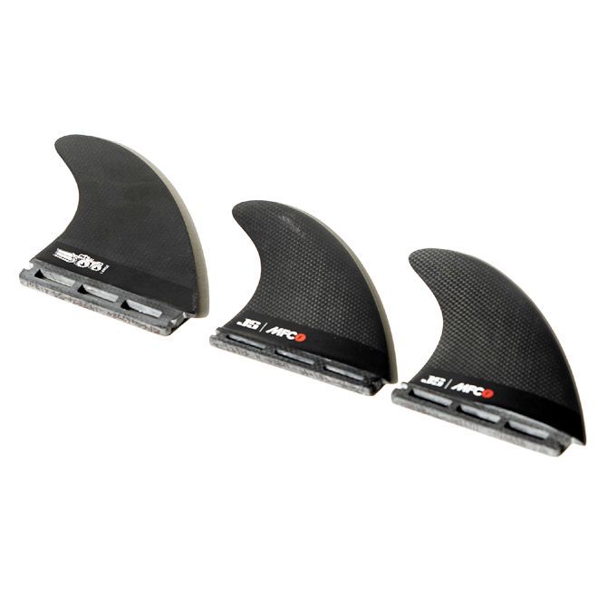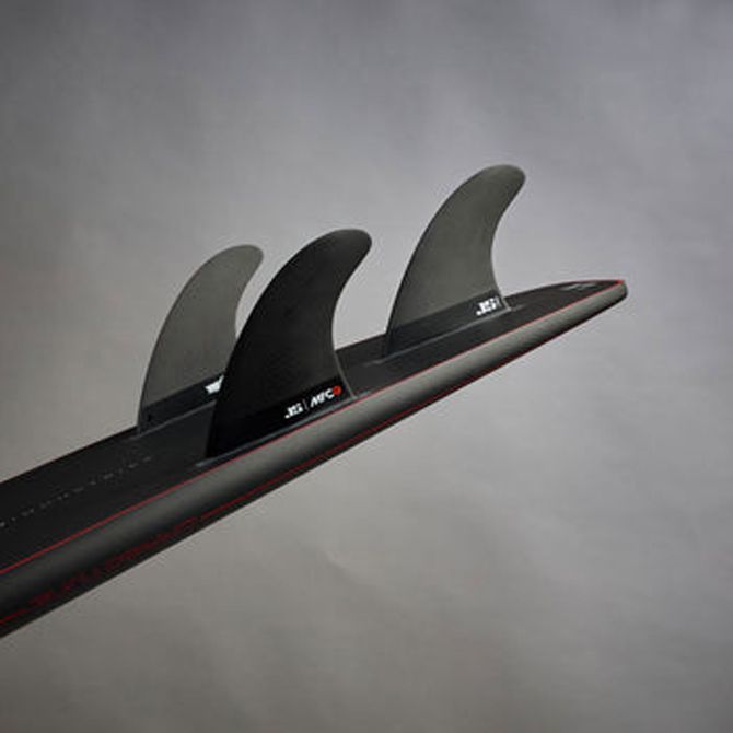 カーボングラスのフィンは、Soric SF2コアを基にカーボンクロス2層ガラスクロス1層、エポキシ樹脂で作られています。軽量化と剛性確保をし、波の上で可能な限り高速を追求するJSの果てしない探求の中で、この積層構造が最良かつ最適なものです。