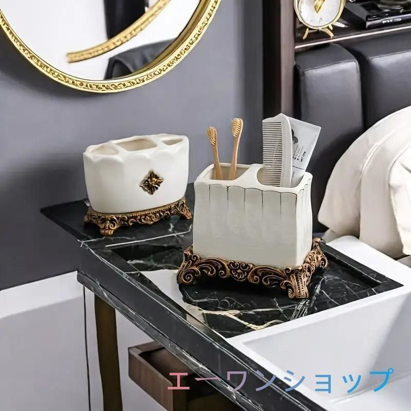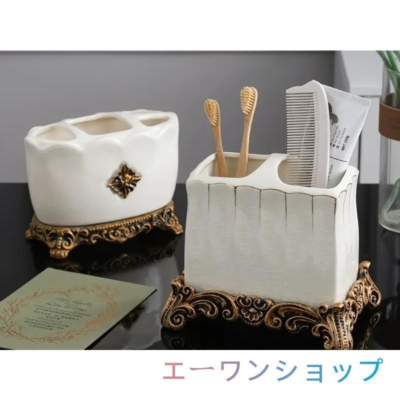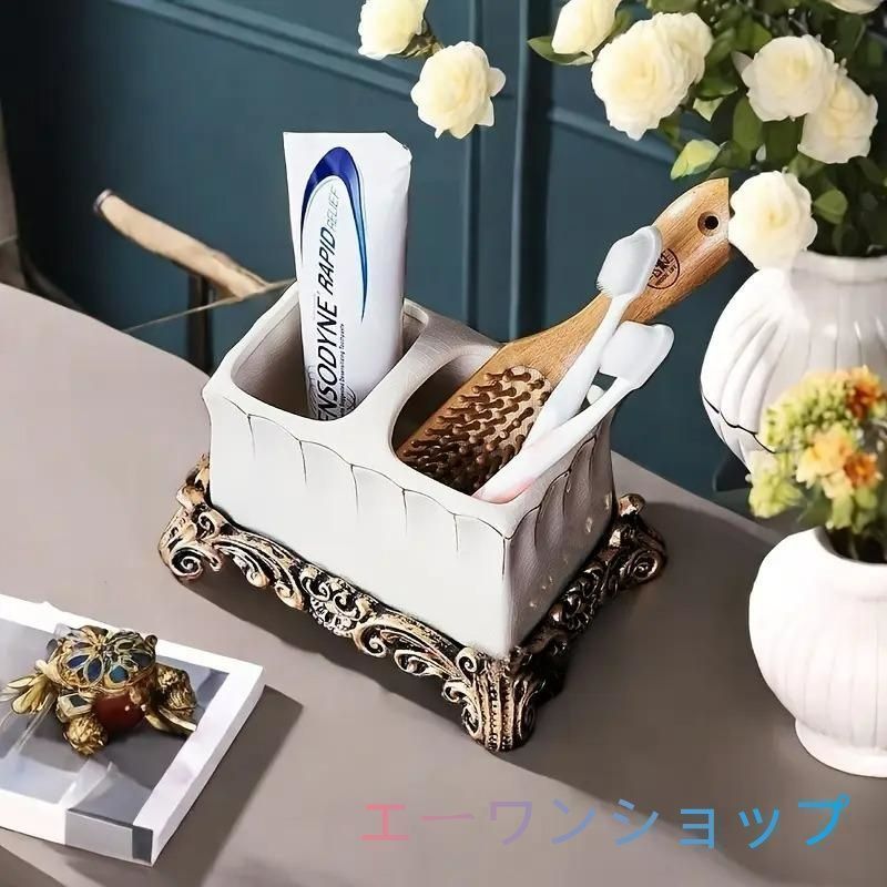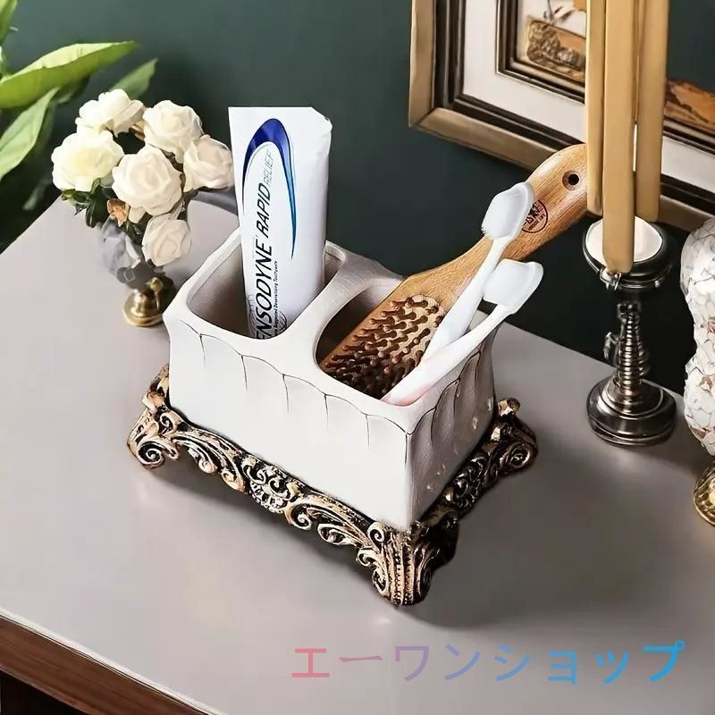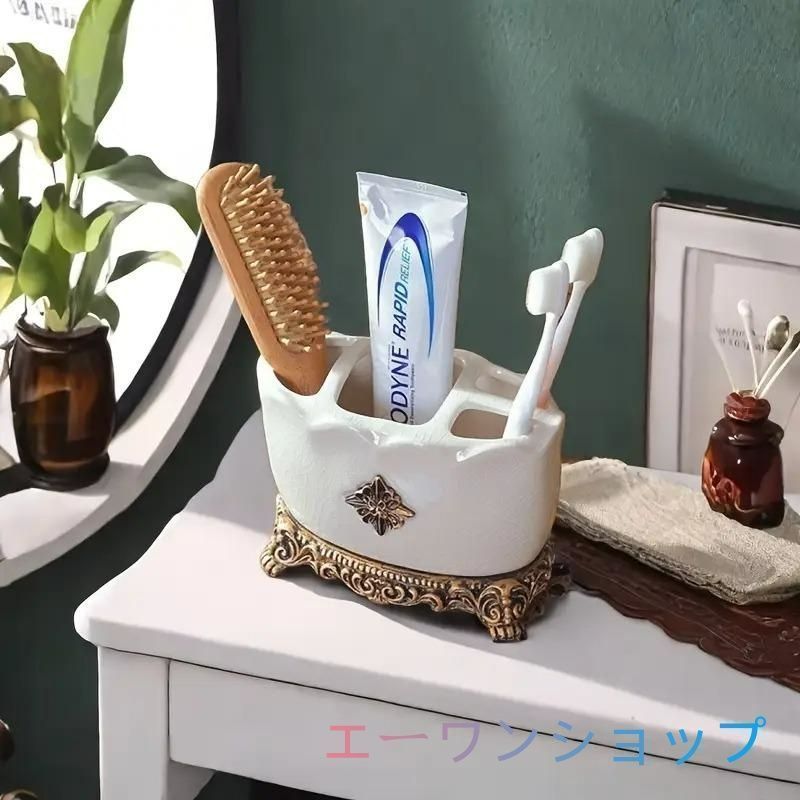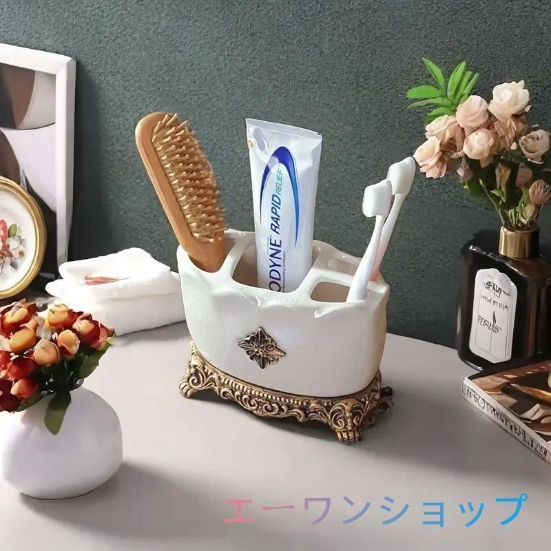 エレガントなヴィンテージ調のセラミック製歯ブラシホルダー。