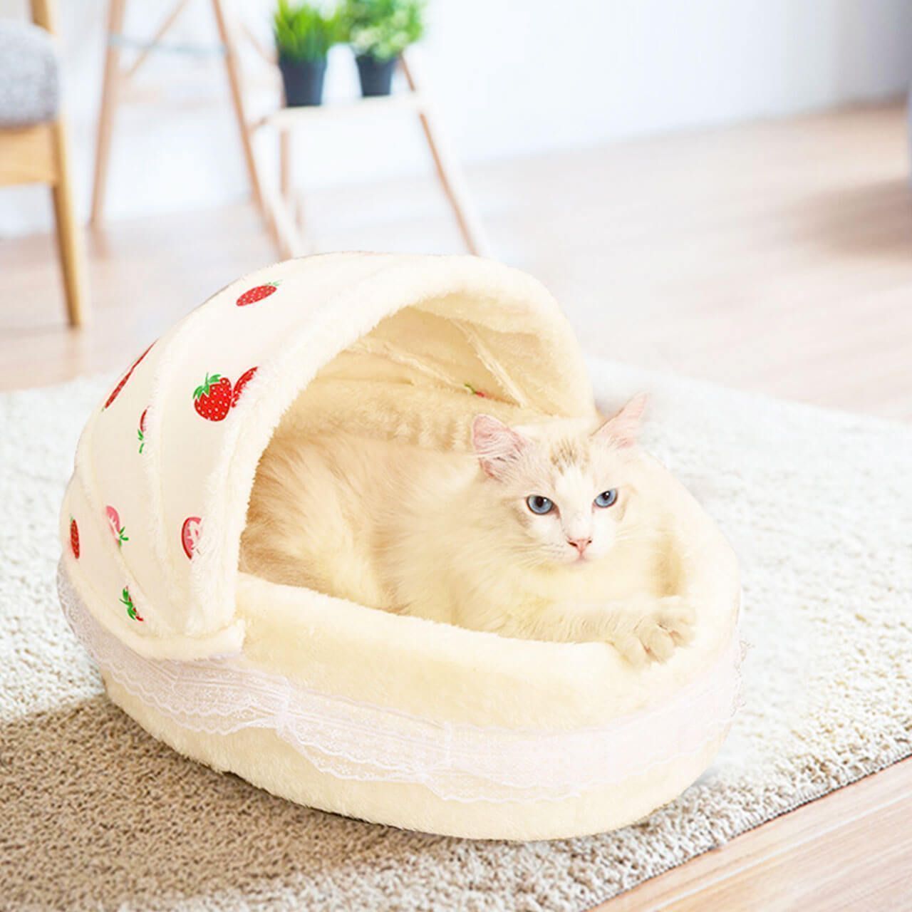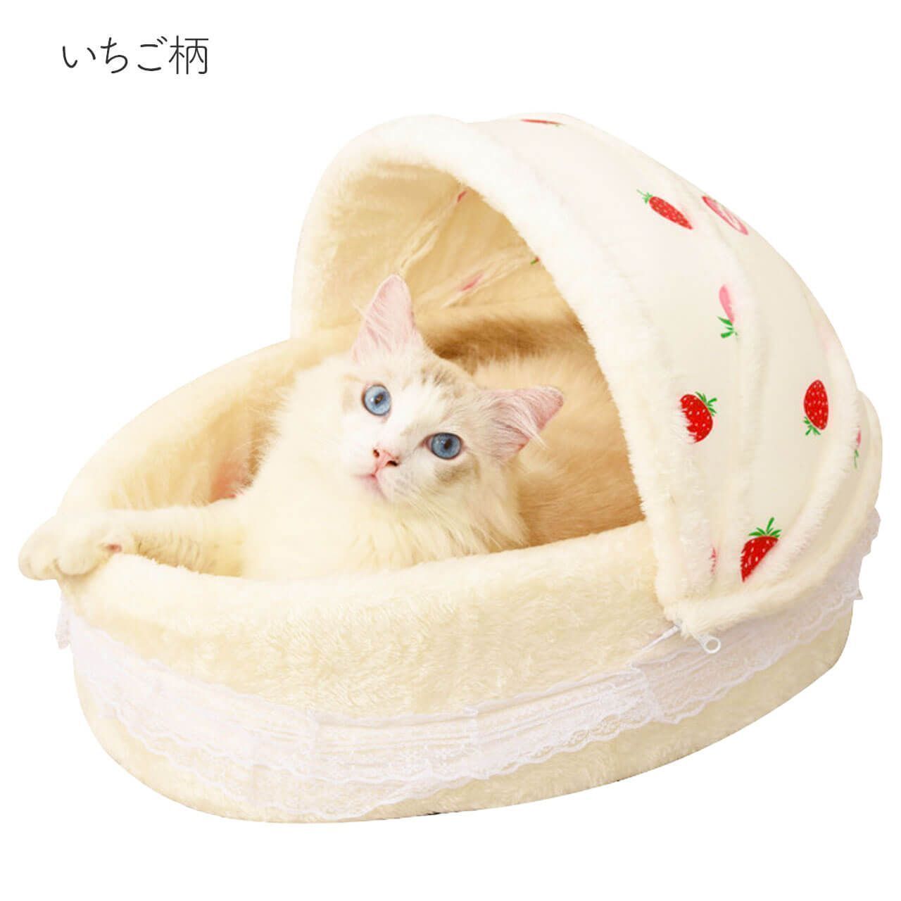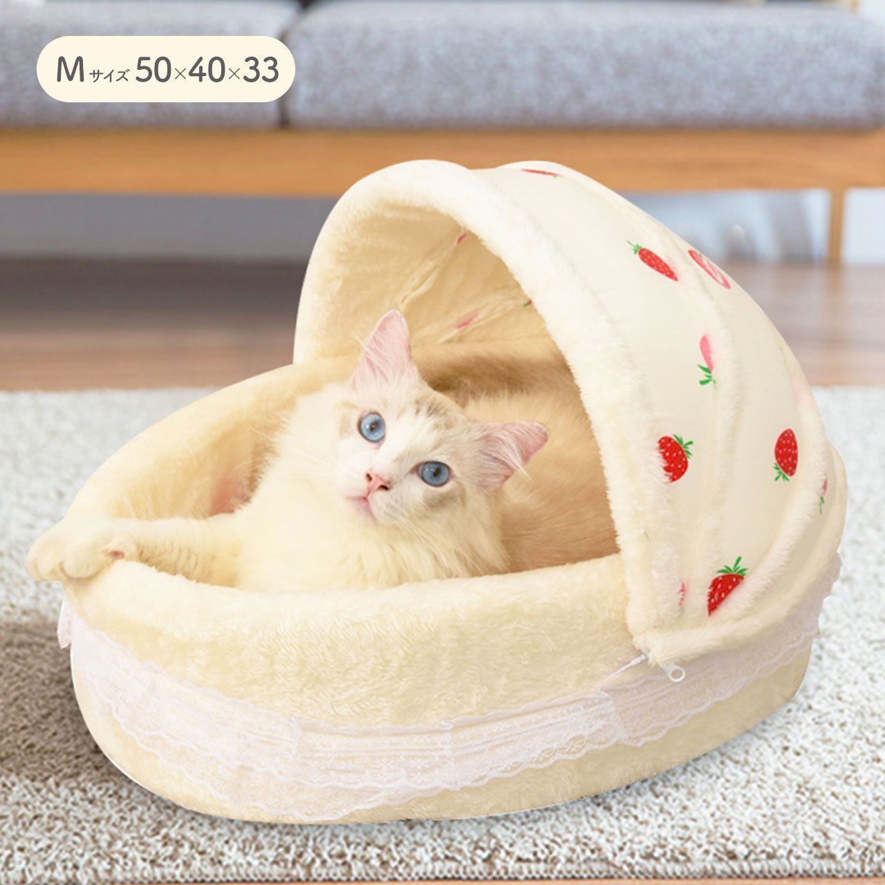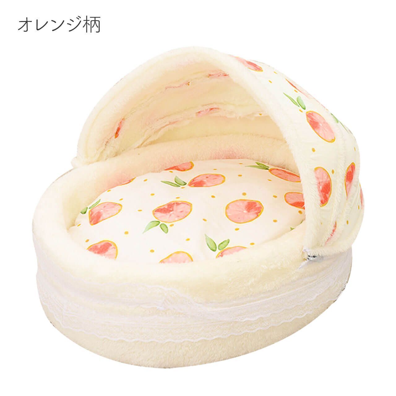 猫 キャットハウス 猫用ハウス 小型犬ハウス ドーム型 ゆりかご シェード 取り外し 猫雑貨 ペットベット 猫 犬 犬用品 猫用品 ベッド 新品 犬ベッド ペットベッド ふわふわ クッション ペット用ベッド かわいいいちご スウィートオレンジ 【Mサイズ】