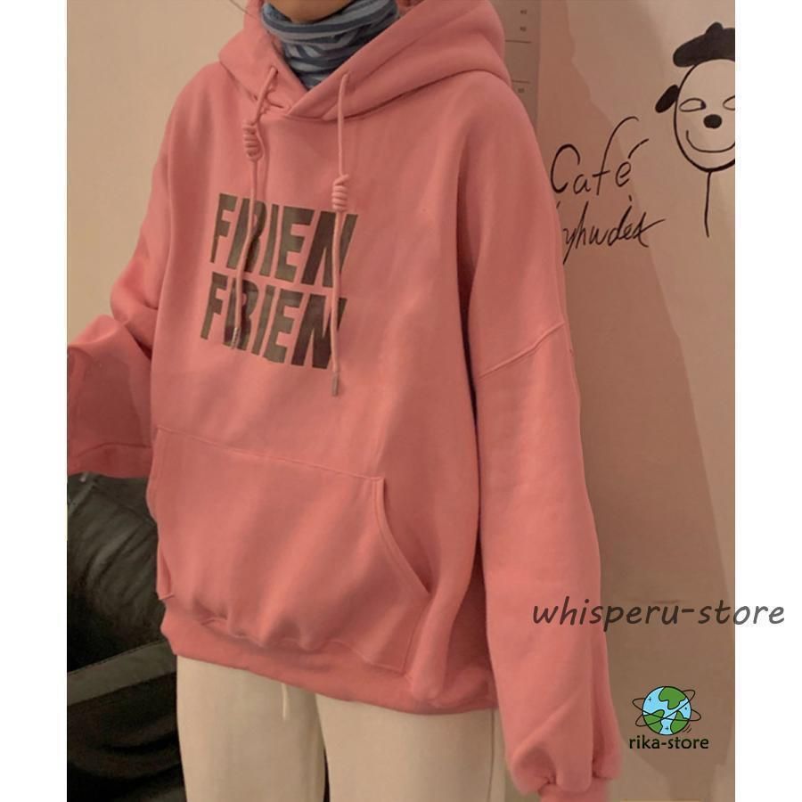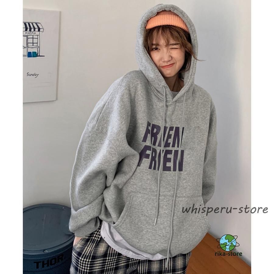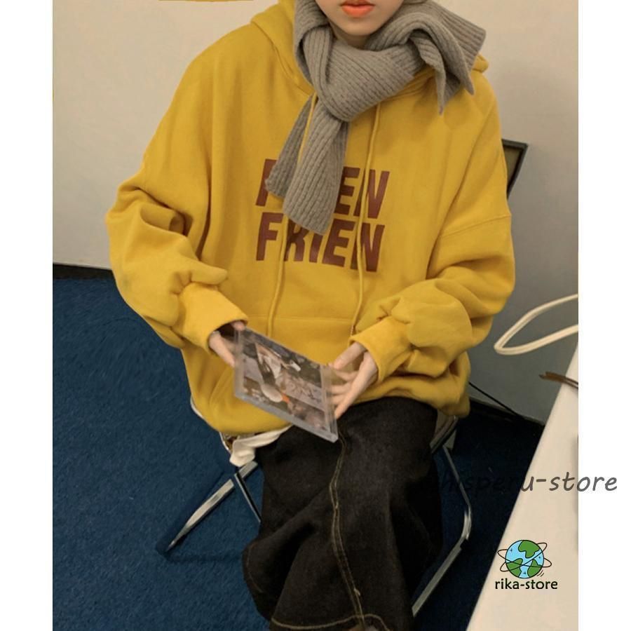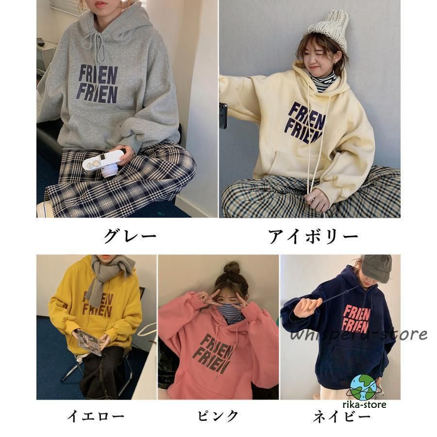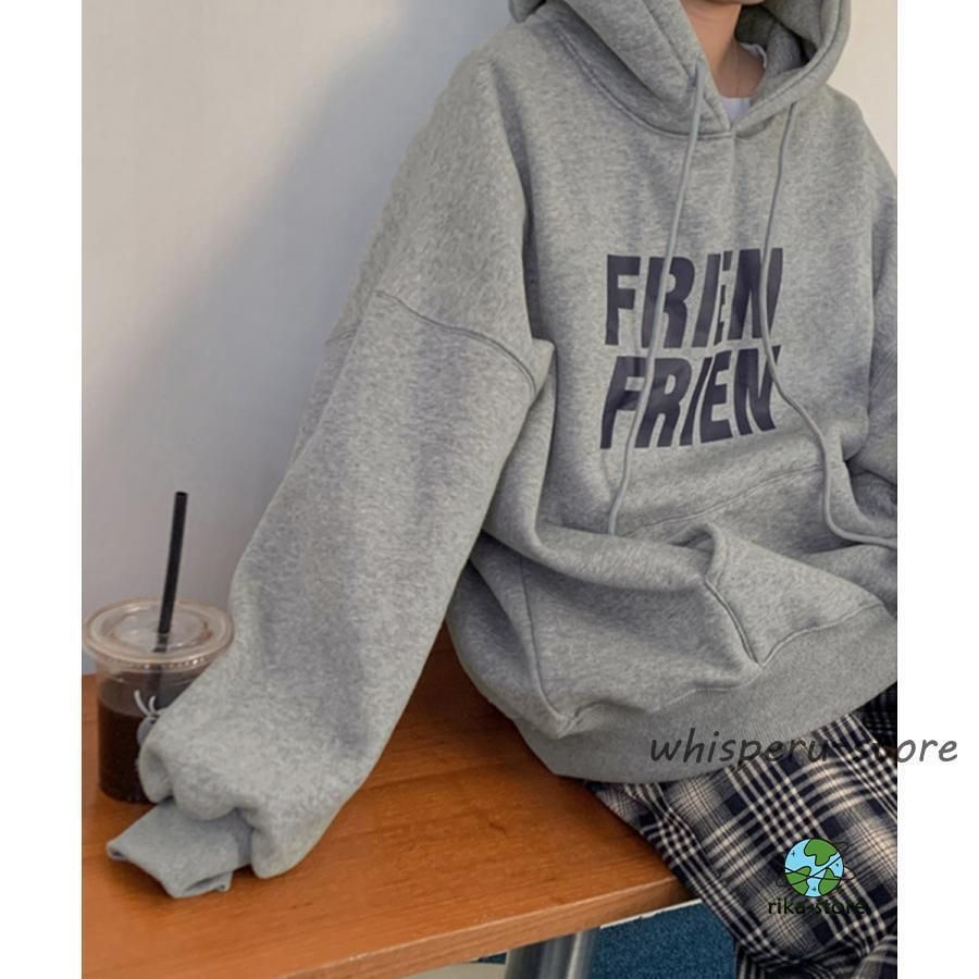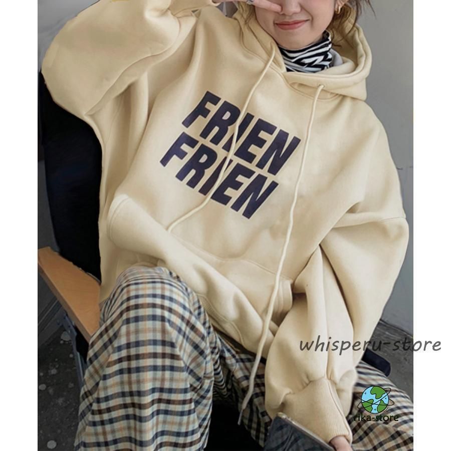 秋冬スウェット レディース 体型カバー 英字ロゴフーディーパーカー カジュアル 長袖プルオーバー ストリート厚手トップス