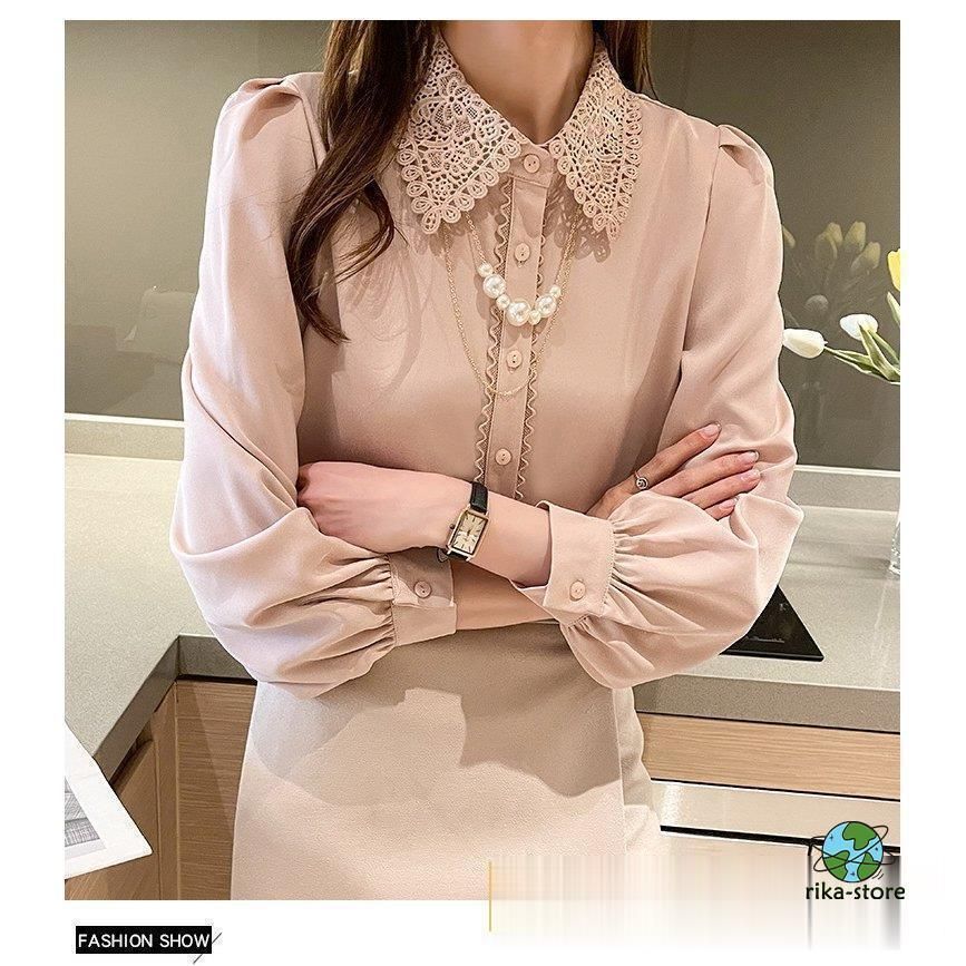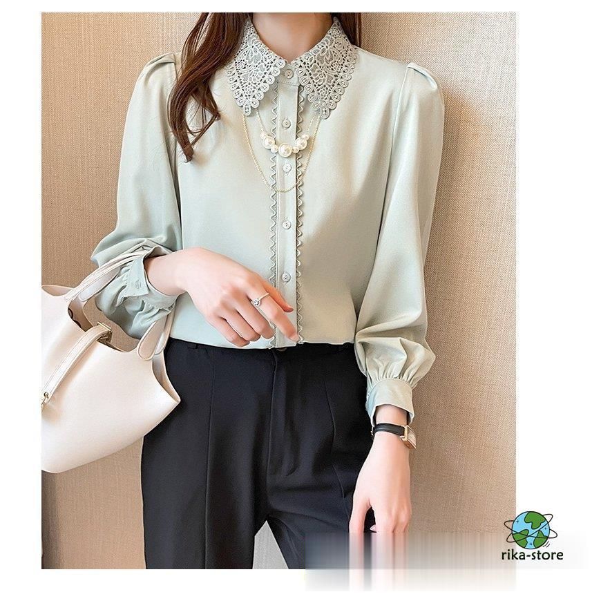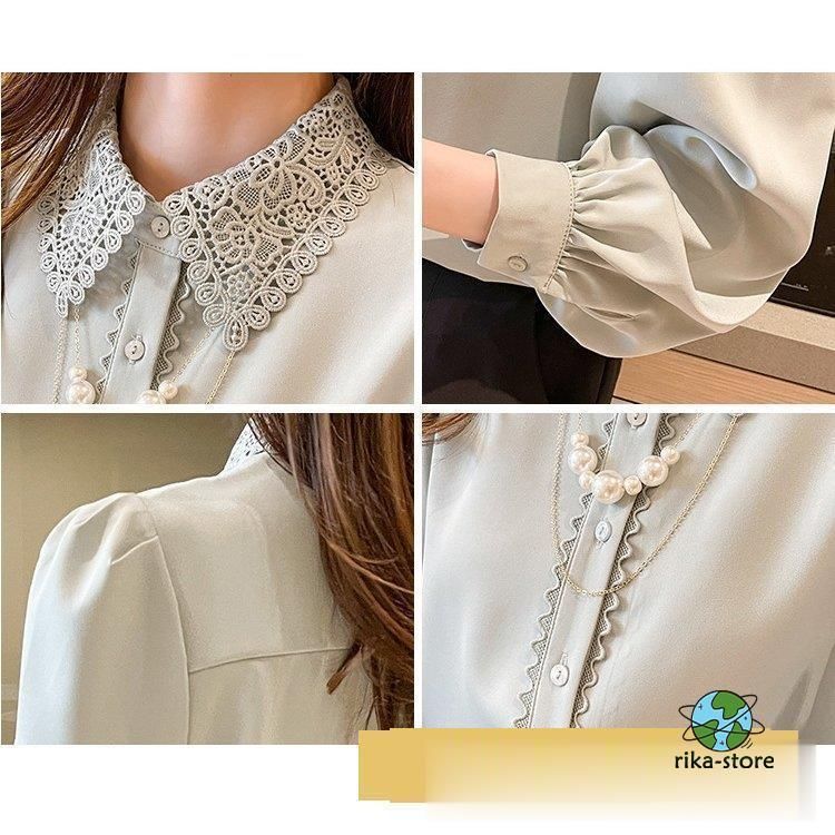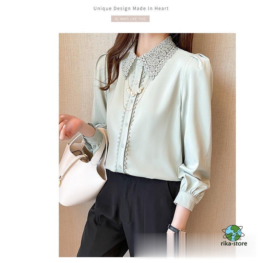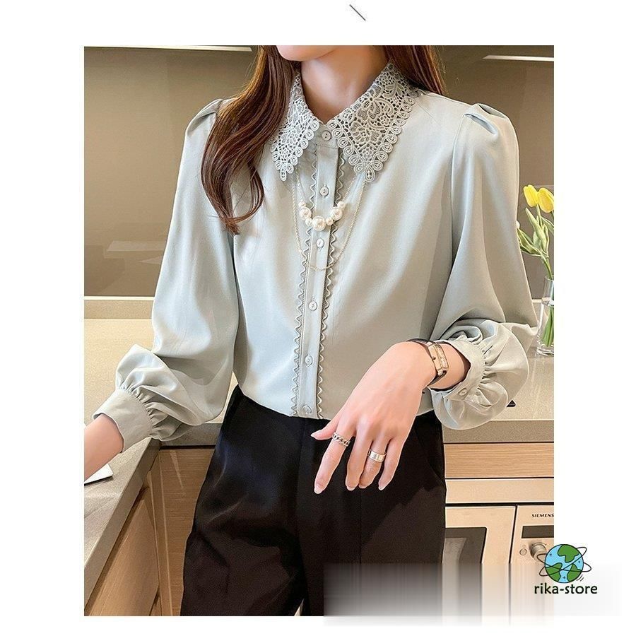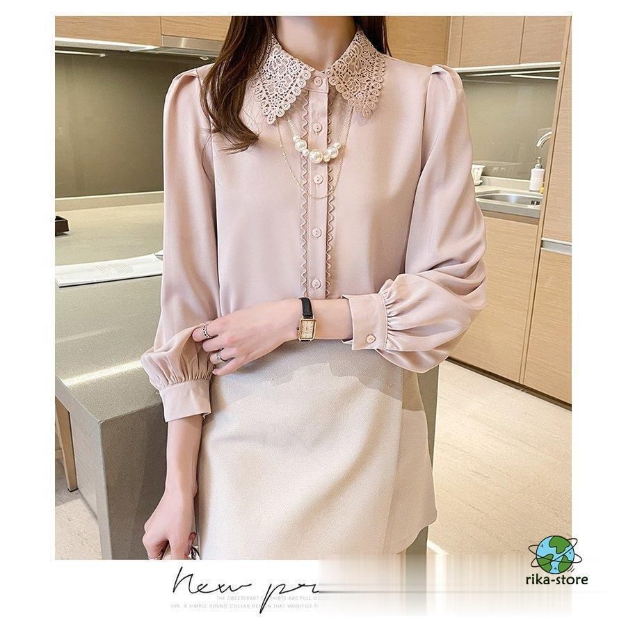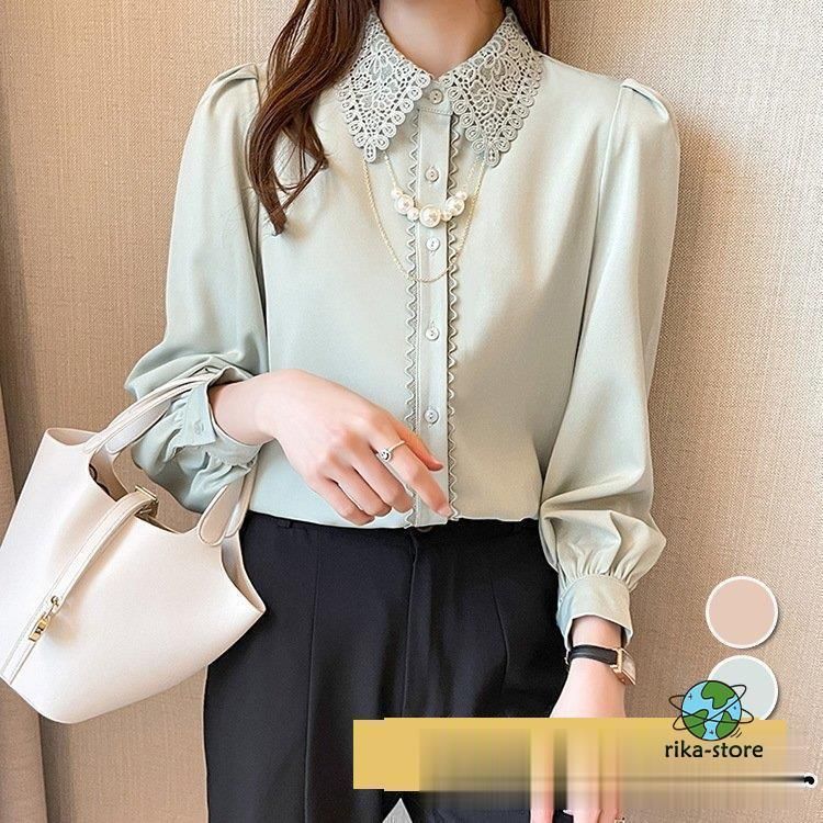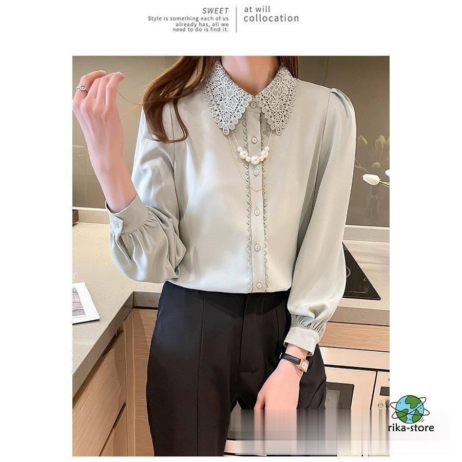 連携キーワード:ブラウス レディース きれいめ 40代 春夏秋新作 オシャレブラウス シフォンシャツ レース折り襟 長袖トップス 大人 通勤OL ゆったり シャツ30代 50代