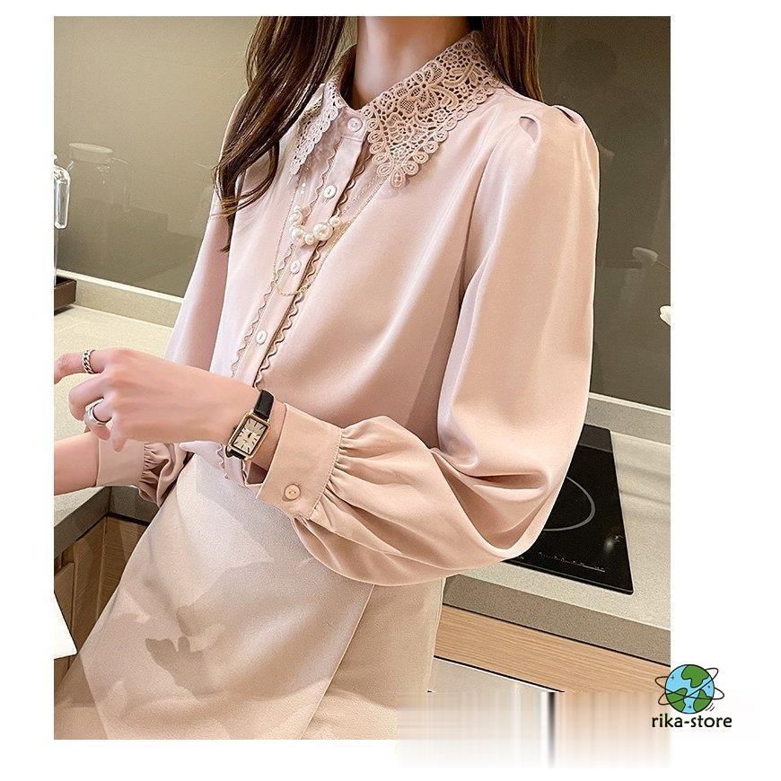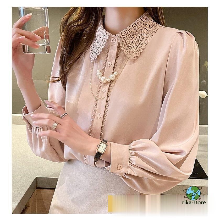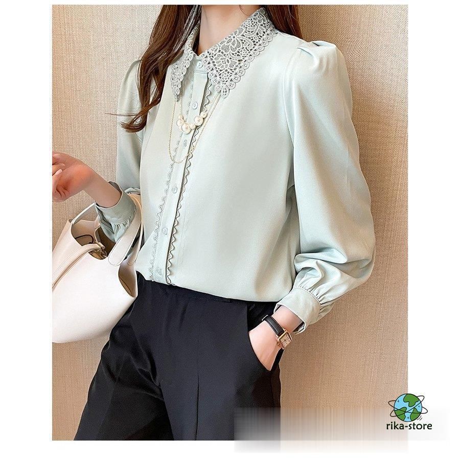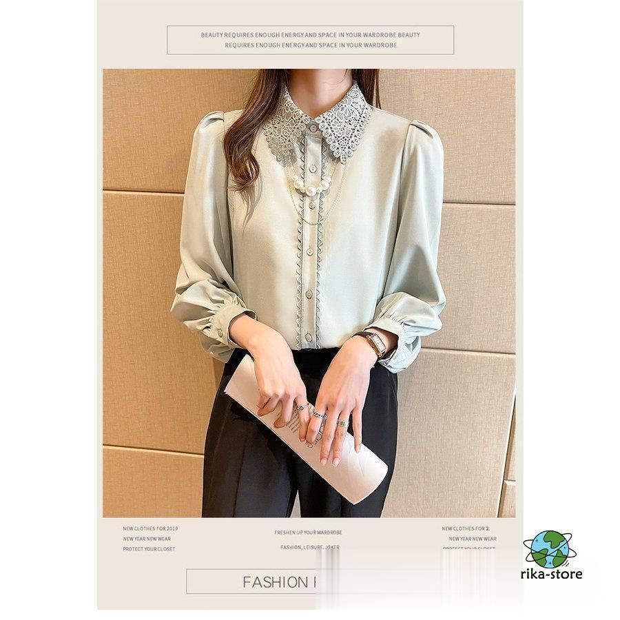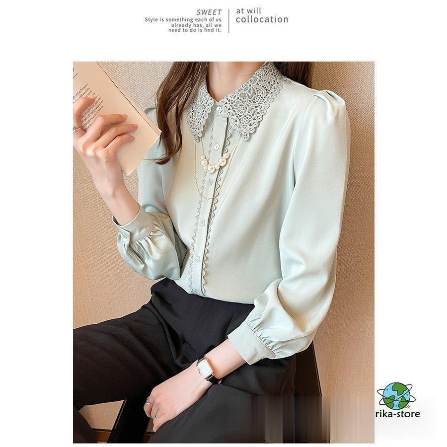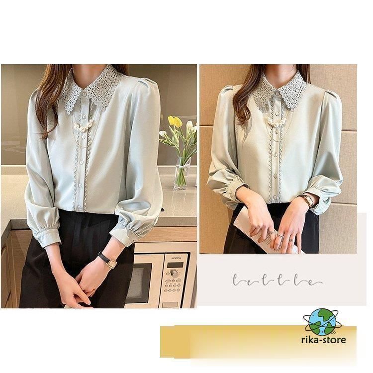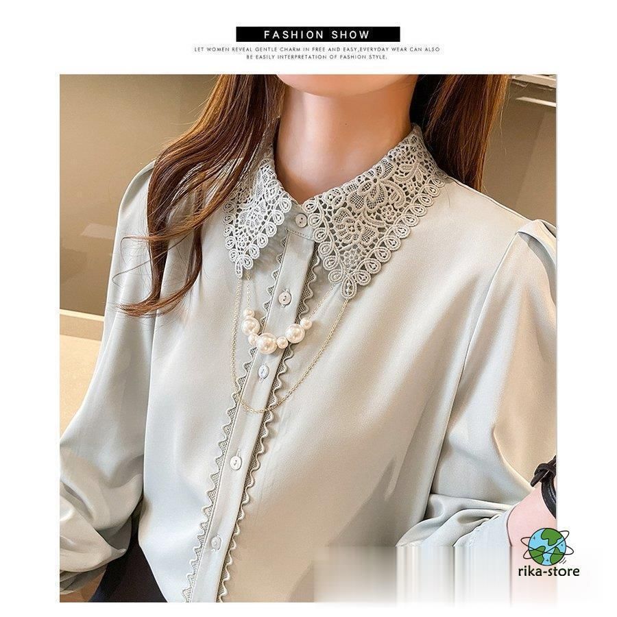 連携キーワード:ブラウス レディース きれいめ 40代 春夏秋新作 オシャレブラウス シフォンシャツ レース折り襟 長袖トップス 大人 通勤OL ゆったり シャツ30代 50代