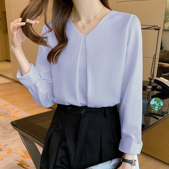 シャツ レディース ブラウス 長袖シャツ トップス オフィス 無地 長袖 体型カバー 可愛い 着痩せ カジュアル ゆったり
