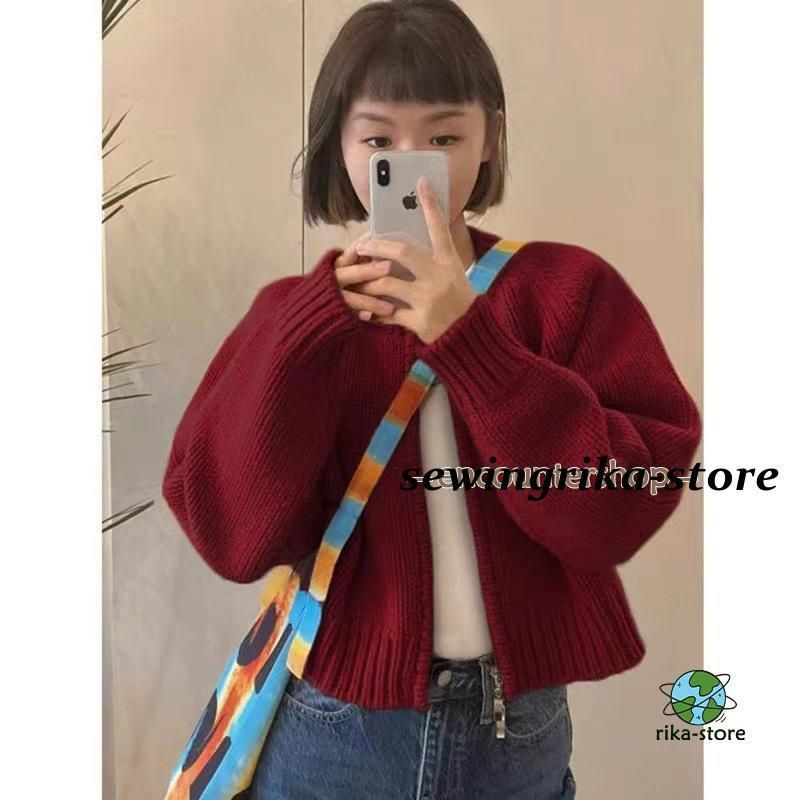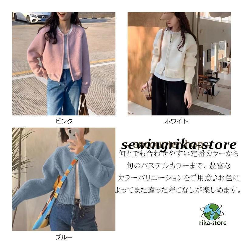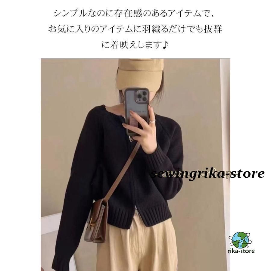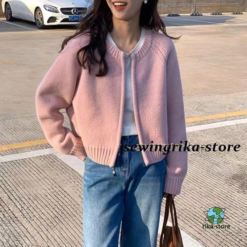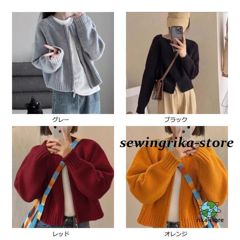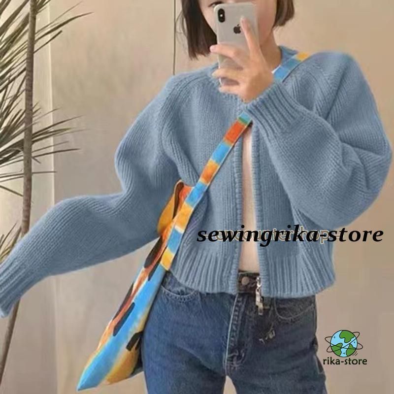 アウター レディース カーディガン ニットセーター トップス 秋冬 長袖 ラウンドネック ニット 厚手 ファスナー ダブルジップ ショート カジュアル ファスナー開閉