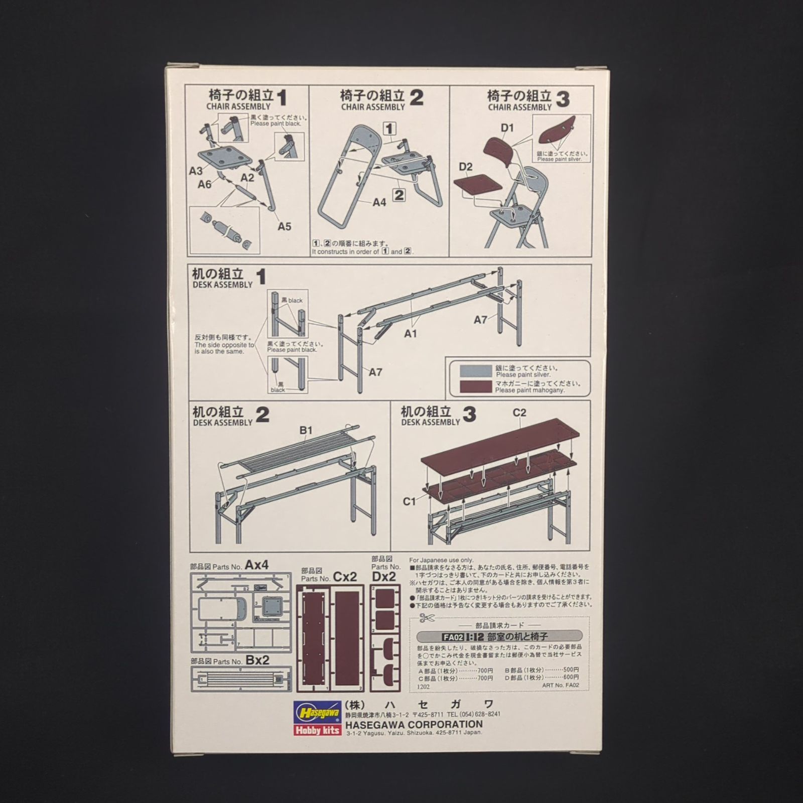 【新品・未開封品】 ハセガワ 62002 FA02 1/12 フィギュア用アクセサリー 部室の机と椅子