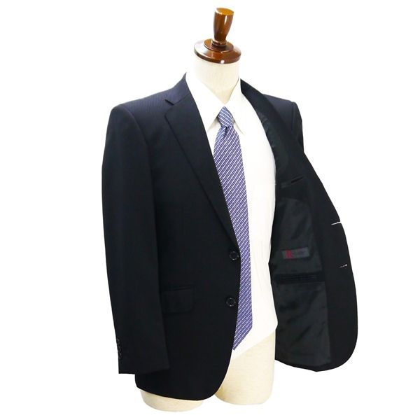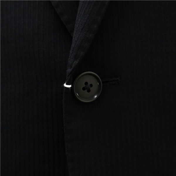 ・春夏対応。2つボタンシングル。背抜き。センターベント。フラップポケット。ネーム刺繍なし。開き見せ。