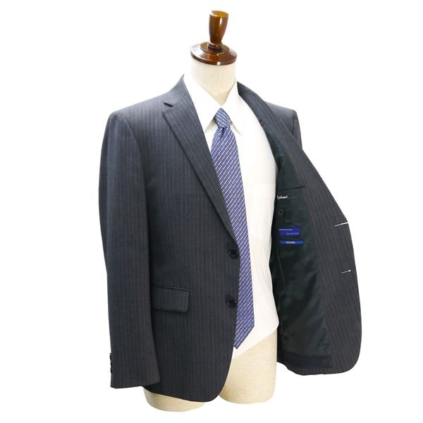 ・春秋対応。2つボタンシングル。背抜き。センターベント。フラップポケット。ネーム刺繍あり。開き見せ。