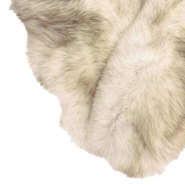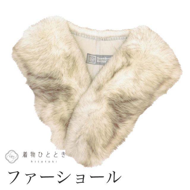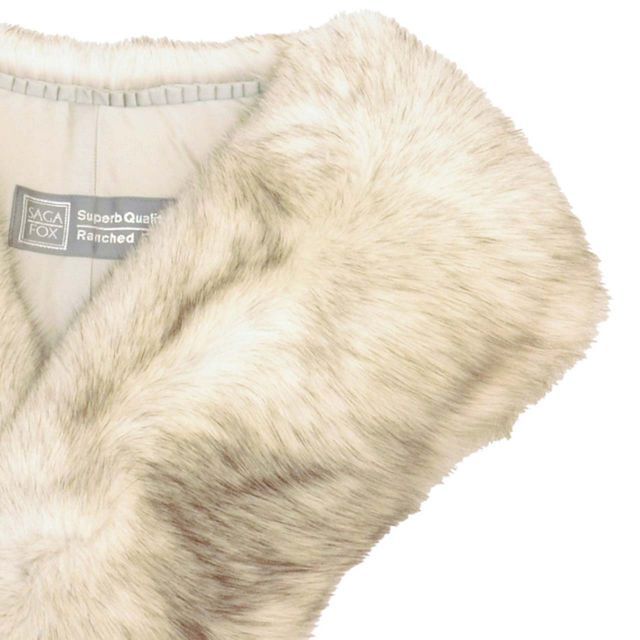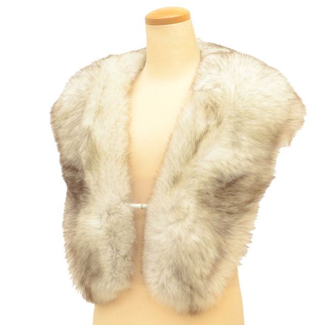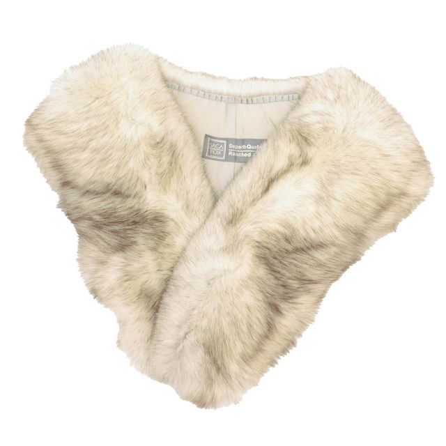 白と茶色のSAGAFOXのリサイクルファーショールです。
