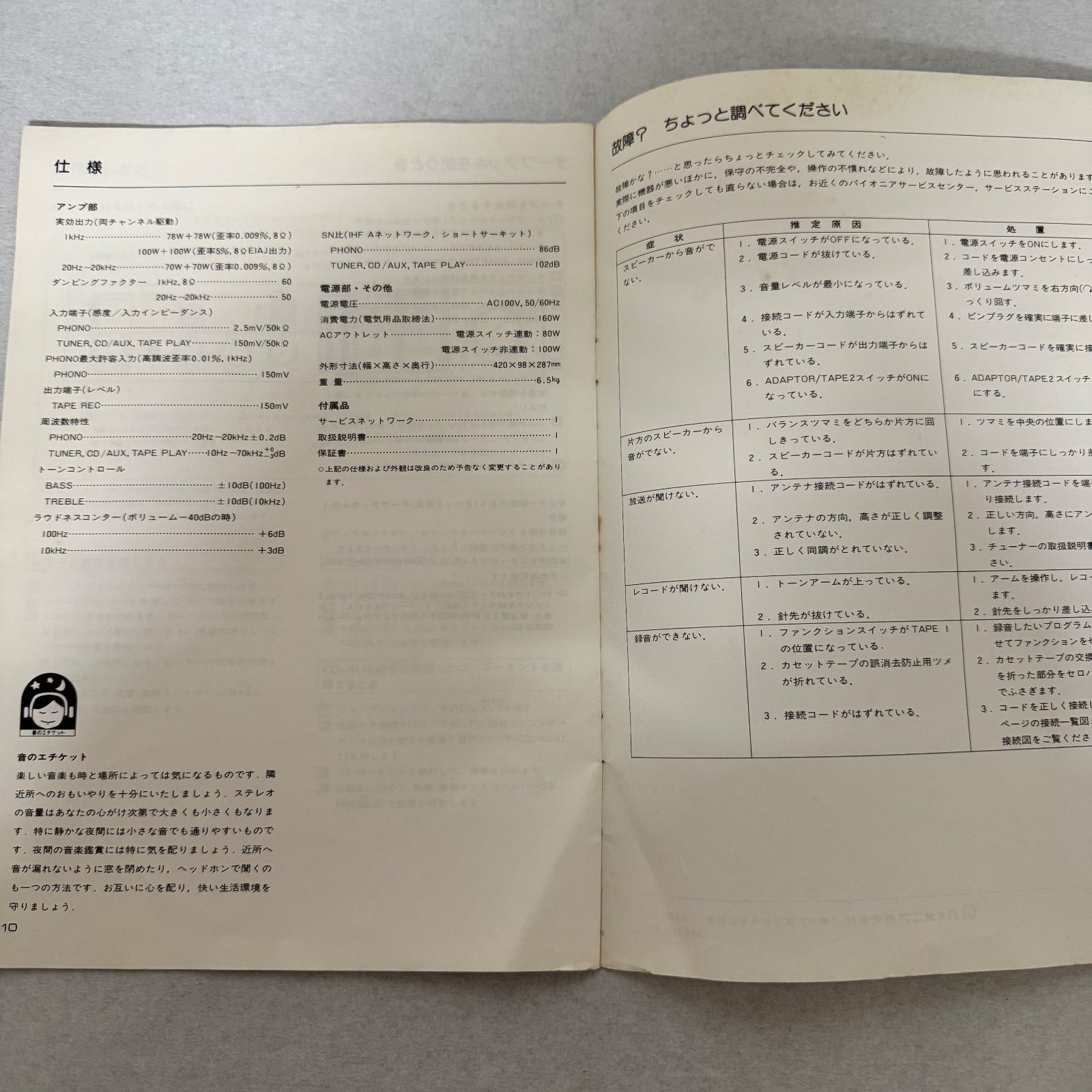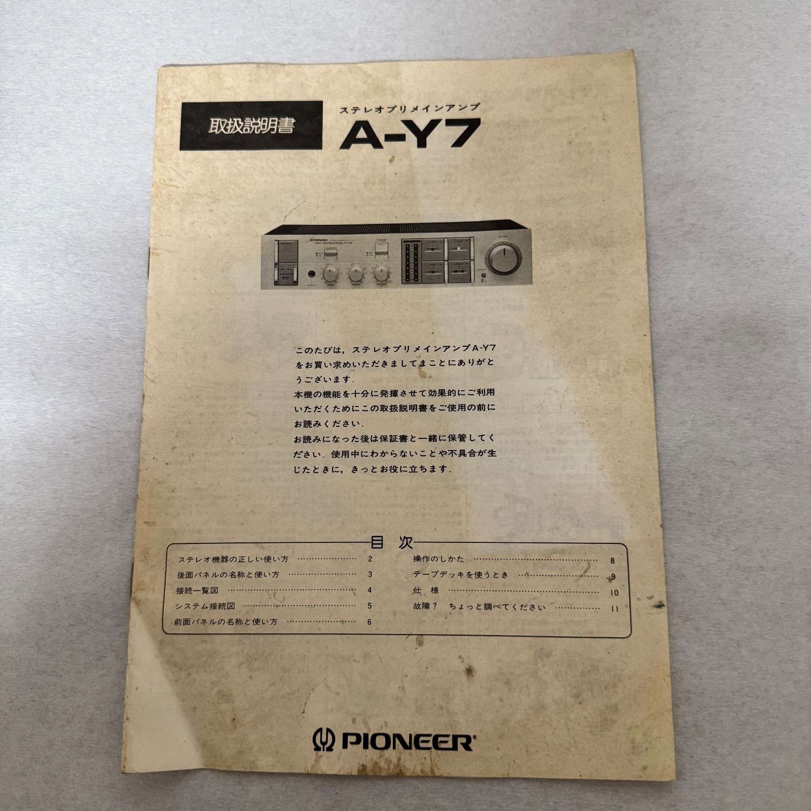 この商品は**「取扱説明書のみ」**の出品です。アンプ本体(Pioneer A-Y7)は付属しません。