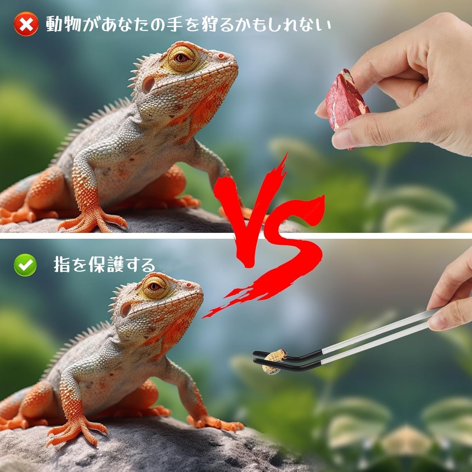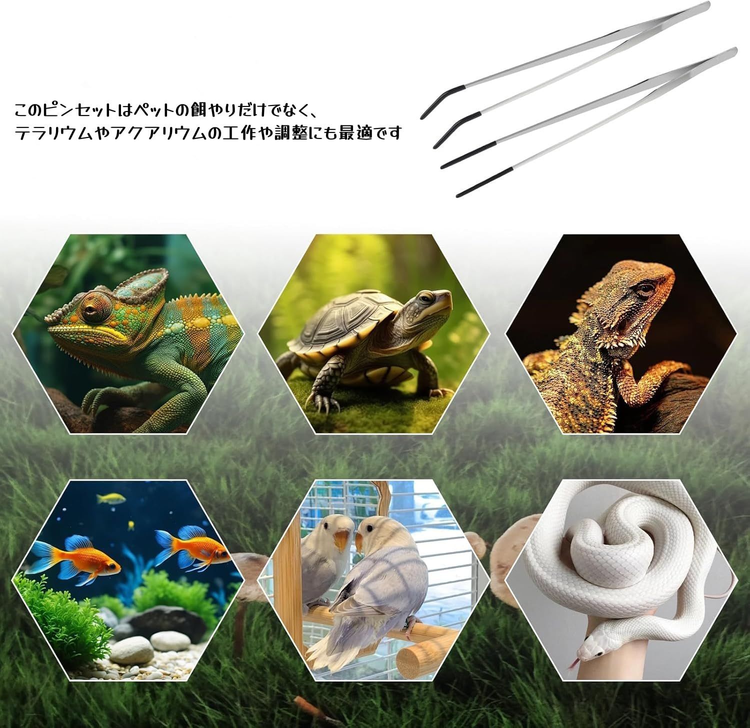 【幅広い用途】:- このピンセットはペットの餌やりだけでなく、テラリウムやアクアリウムの工作や調整にも最適です。小さな石を動かしたり、植物を取り除いたり、手の届きにくい場所にあるものを掴んだりするなど、この長いピンセットがあれば、作業がより簡単かつ正確に行えます。