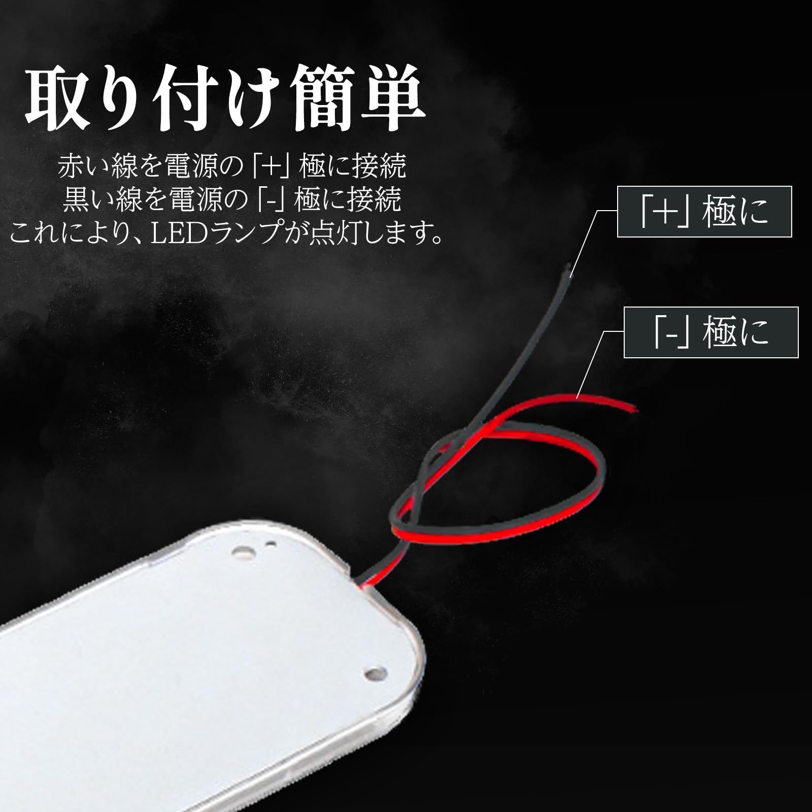 【簡単取付け】薄型なので、狭いところにも取り付け可能です。極性がありますので、結線は赤い配線をプラス(+)、黒い配線をマイナス()に接続してください。