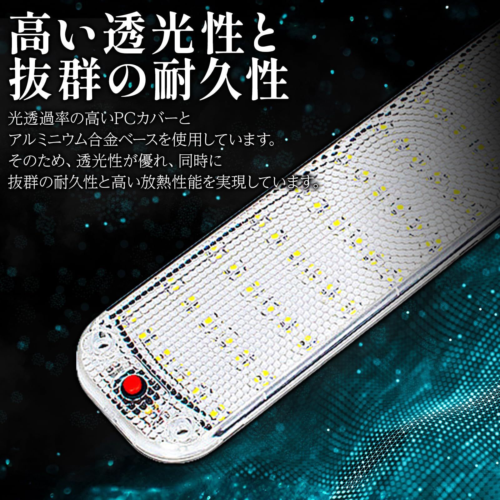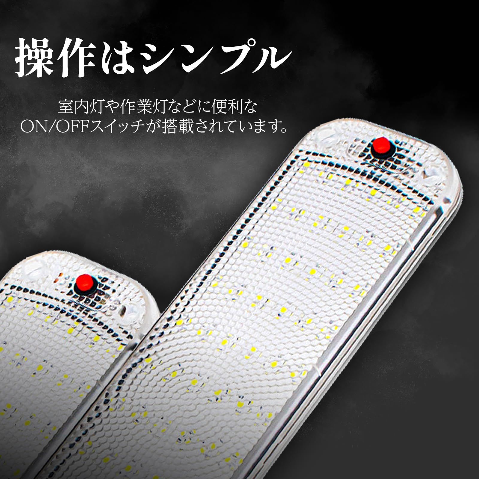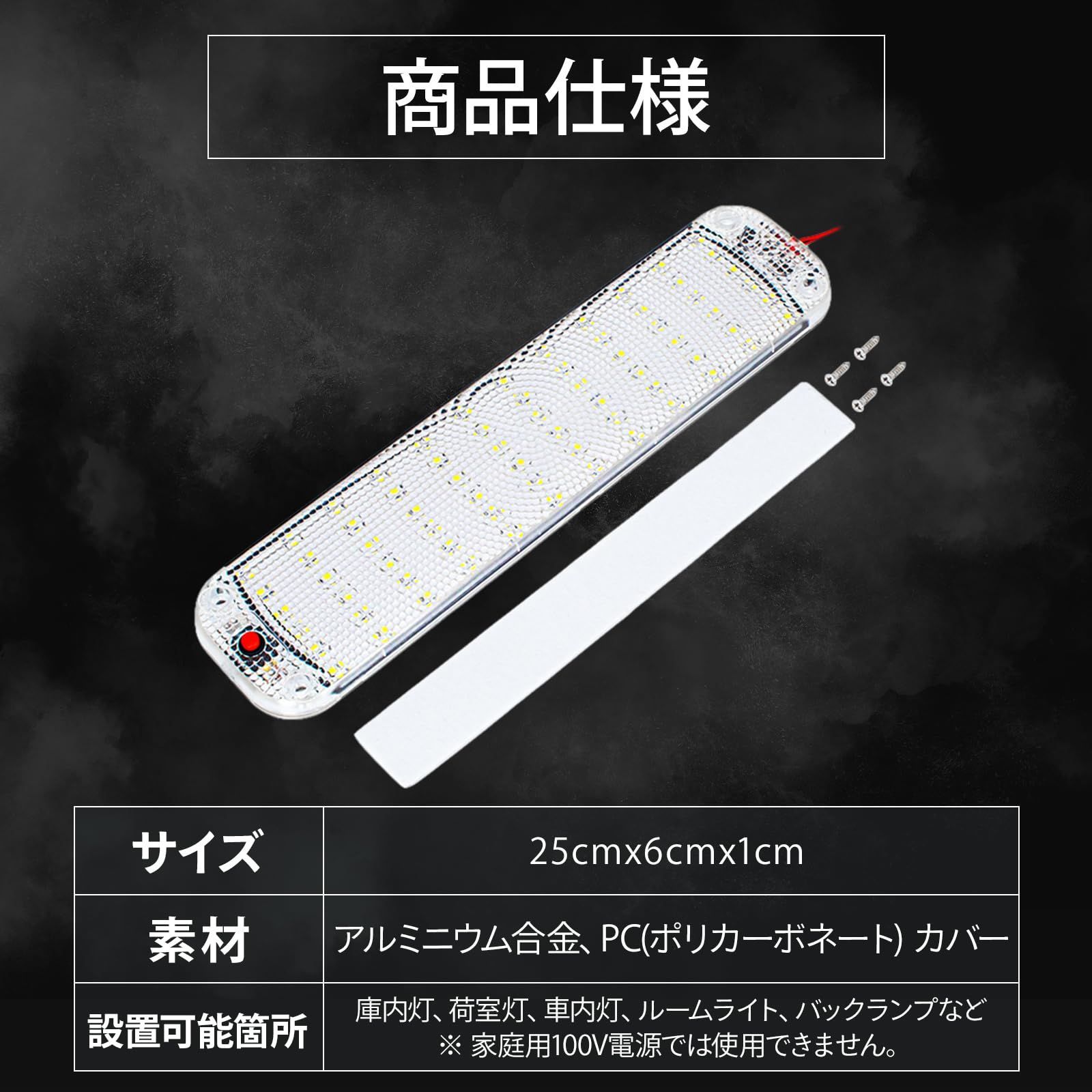 【汎用性】車両の電源に合わせて12Vまたは24Vで使用できるので、普通車やトラックなど多くの車両に対応しています。また便利なON/OFFスイッチ付きで、車内灯、ルームランプ、バーライト、ライトバー、室内灯、庫内灯、作業灯など幅広い用途でご使用いただけます。(家庭用100V電源では使用できません。)