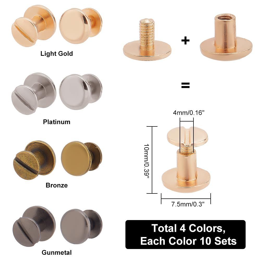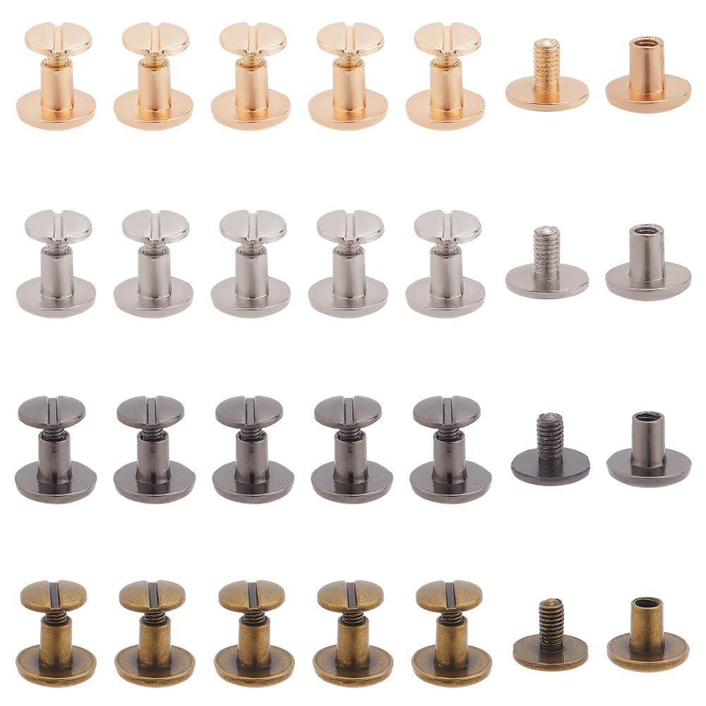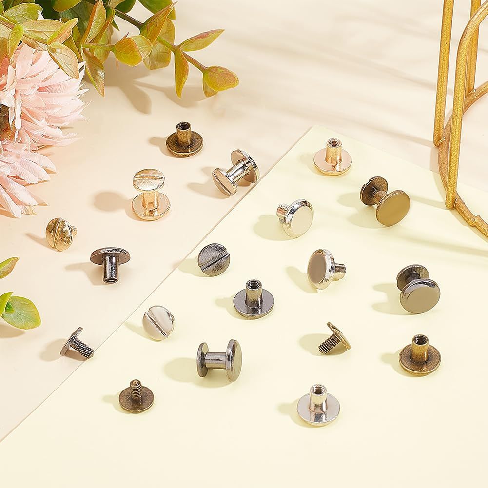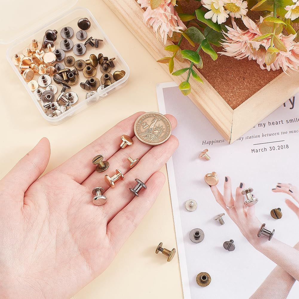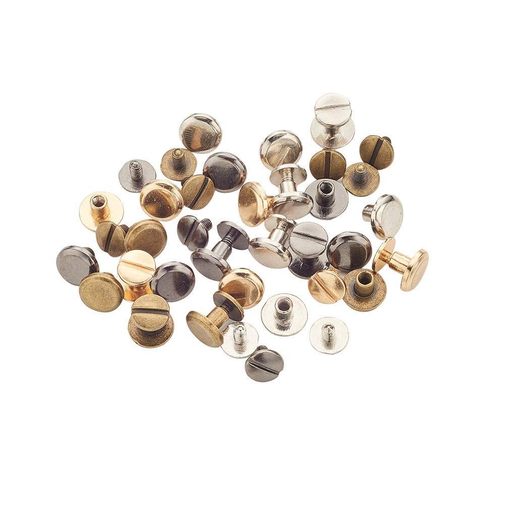 PH PandaHall 40組 4色 合金 レザークラフト 底びょう リベット スタッズ パーツ 鋲 リベット スタッド ネジ式 バッグ ベルト レザーブレスレット ドキュメントブックアルバム製本スロット