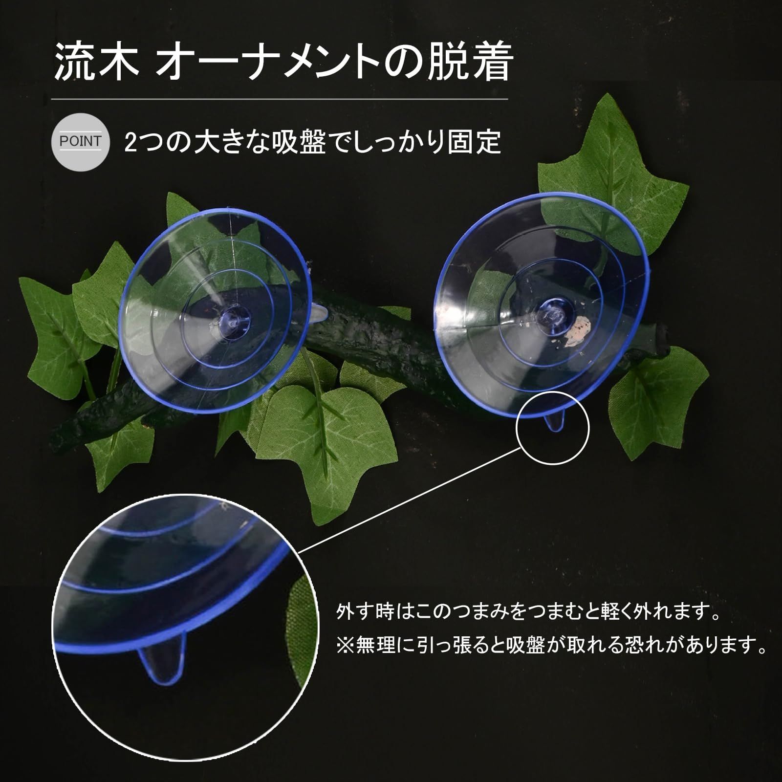 人工水草で簡単・美しい緑のアクセント! 流木の様なデザイン性もさることながら、人口の葉っぱも付いているので、人工水草としても使用できる多機能性。爬虫類・両生類にとっても心地よい隠れ場所や足場となります。丸洗いできるので、お手入れも楽々、いつでも清潔な環境を保てます。