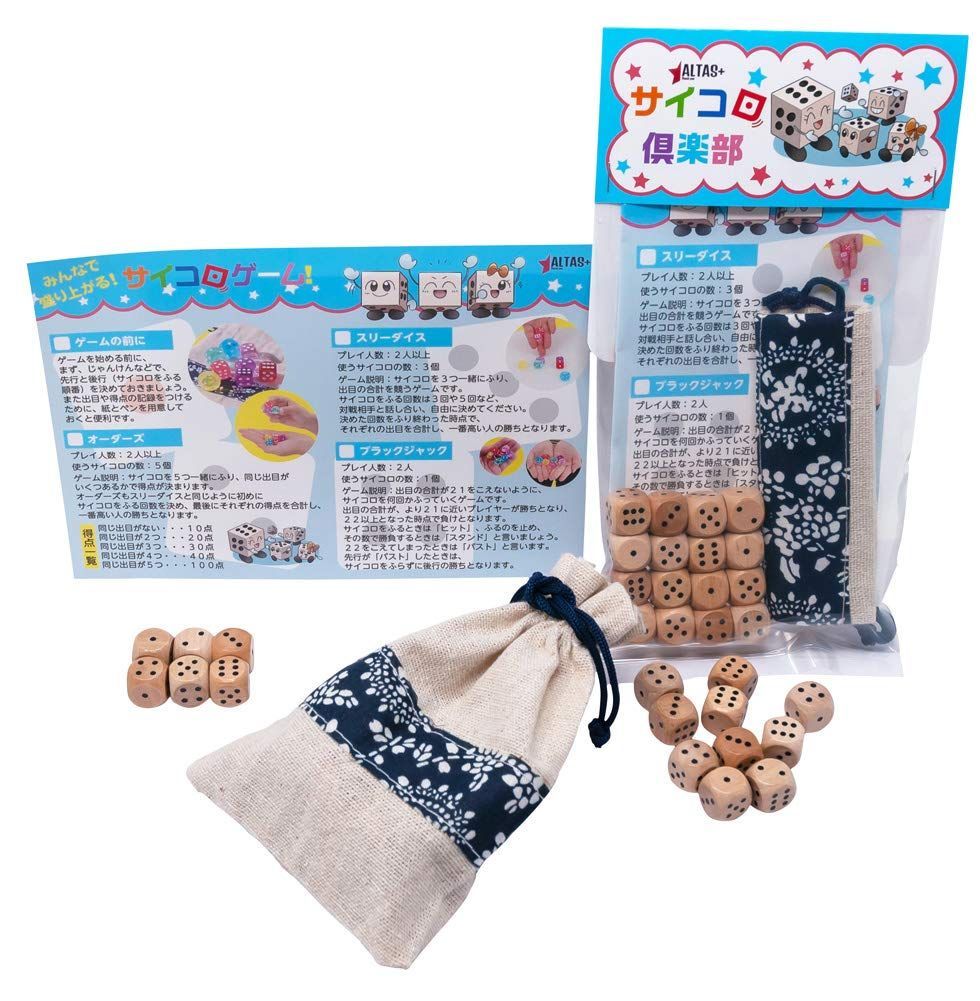 ALTAS+ サイコロ 木製 ダイス 木 12mm かわいい 癒やし すごろく ダイス ゲーム おもちゃ 6面 セット ラウンドカット 12ミリ 点の目