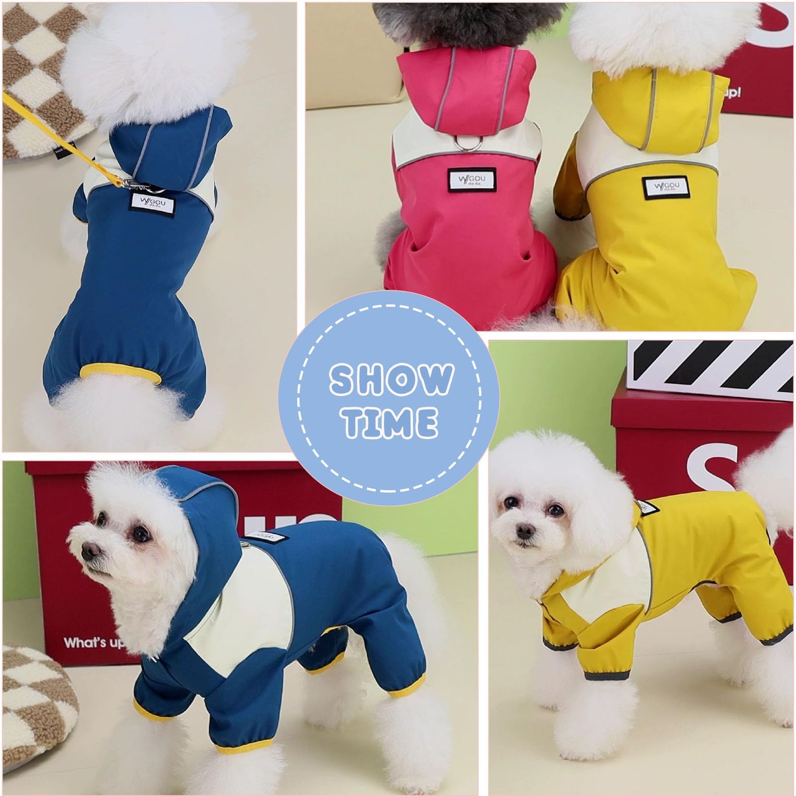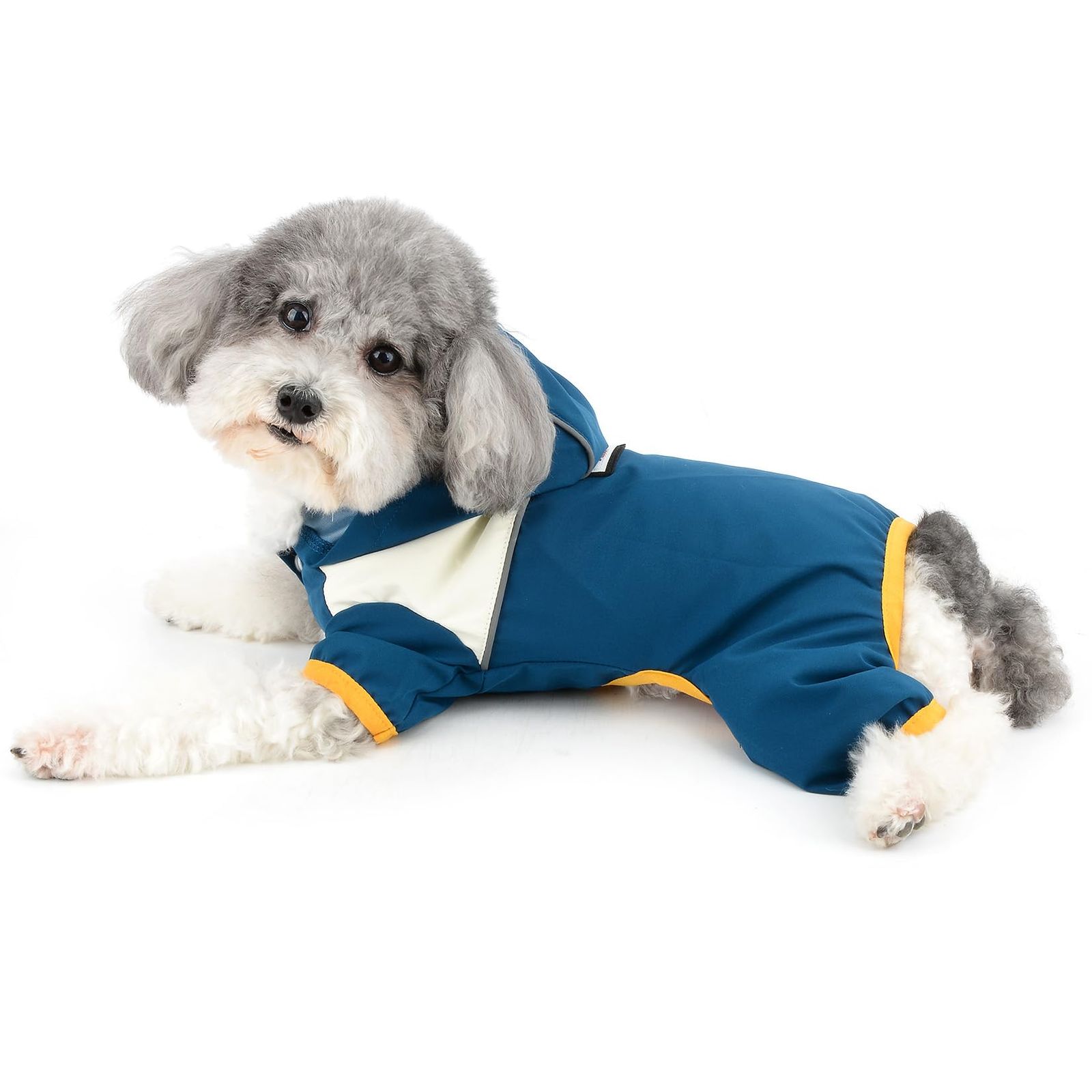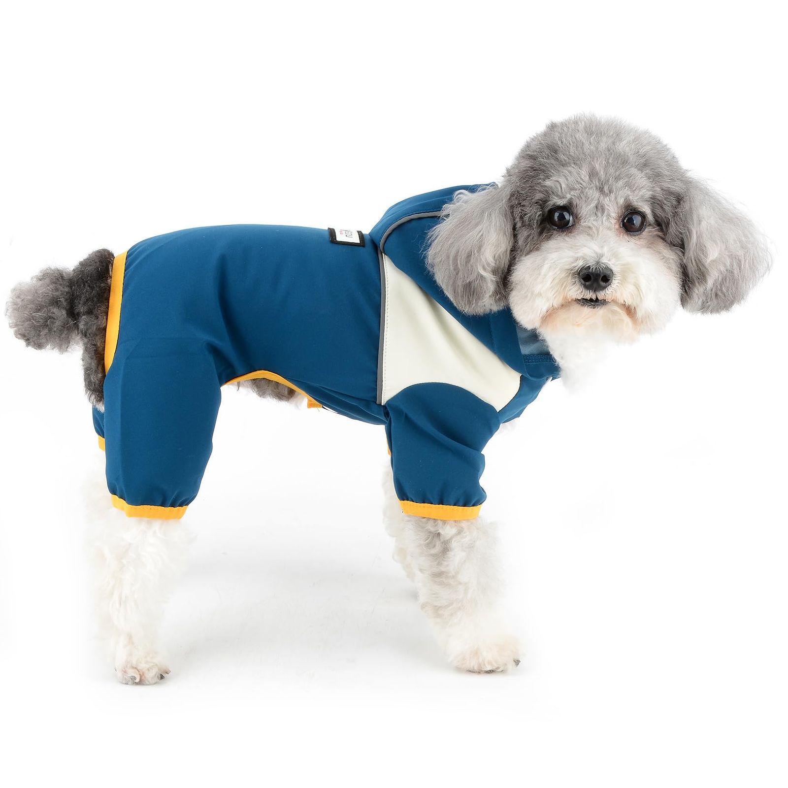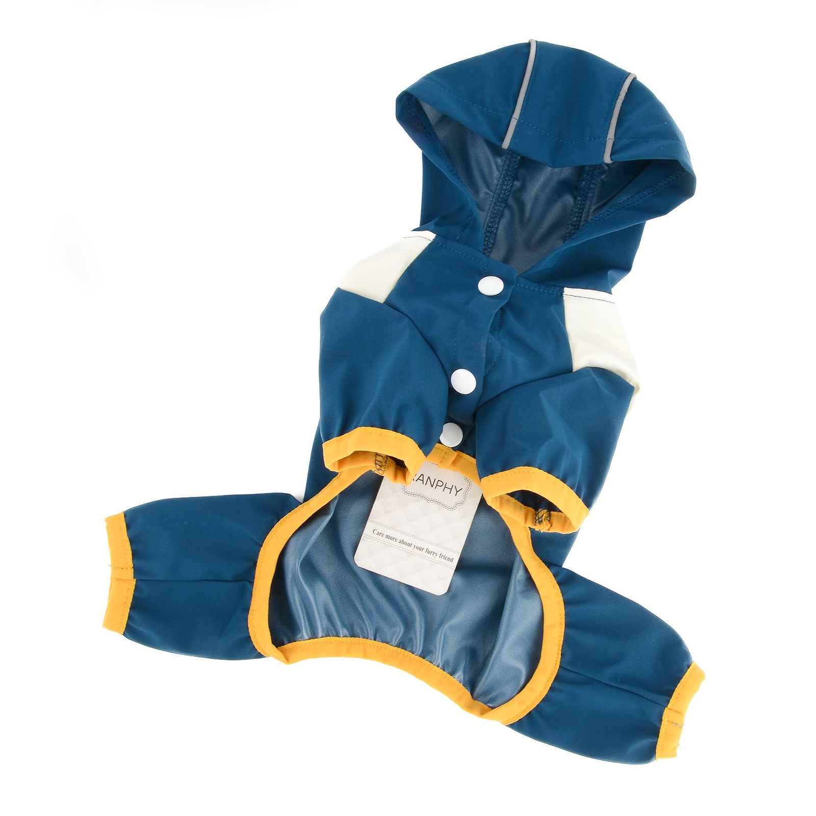 注意:伸縮性のない素材を使用しているため、レインコートはぴったりとフィットしますのでご注意ください。 小型犬または中型犬にのみ適合します。レインコートがきつすぎないように、サイズを選択する際は胸囲に最大 2 インチを加算する必要があります。