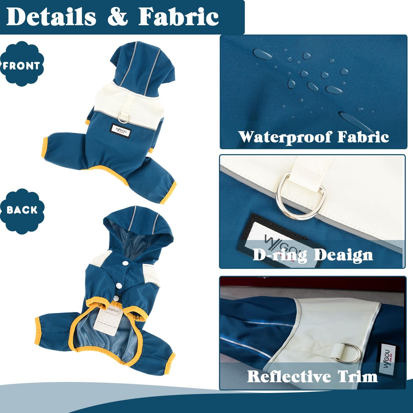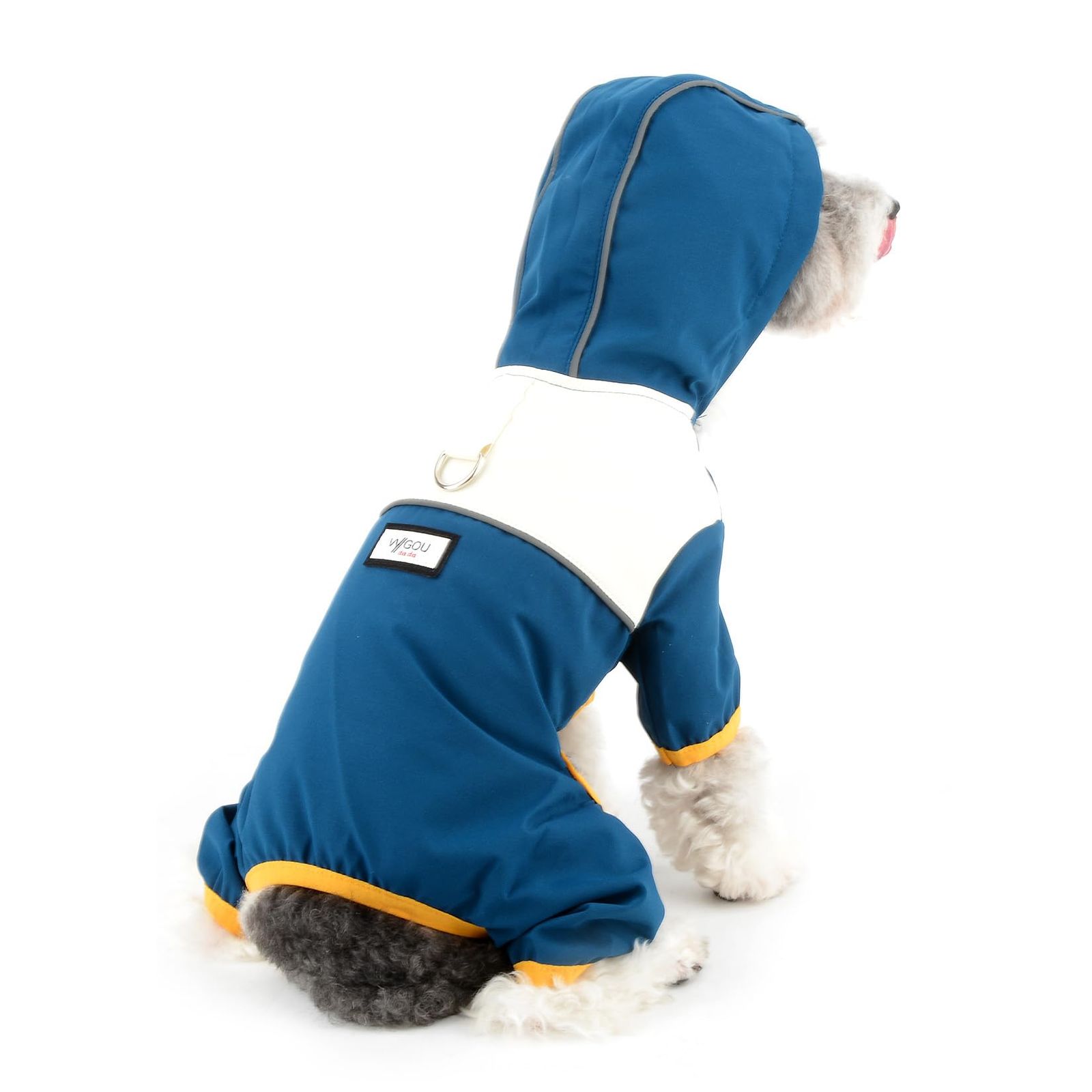 【ペットにやさしいデザイン】各ラフィー犬の防水コートには、歩きやすいストラップ穴がデザインされています。Ranphy犬のレインコートにはフードが付いており、ファッションと快適さを簡単に結びつけている。