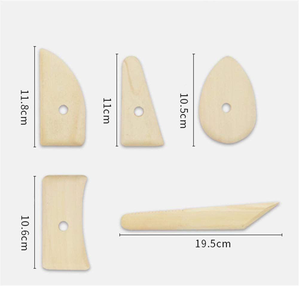 Kingsie 陶芸用品 こて 5個セット 木ごて 粘土ヘラ 陶芸 粘土道具 モデリングツール
