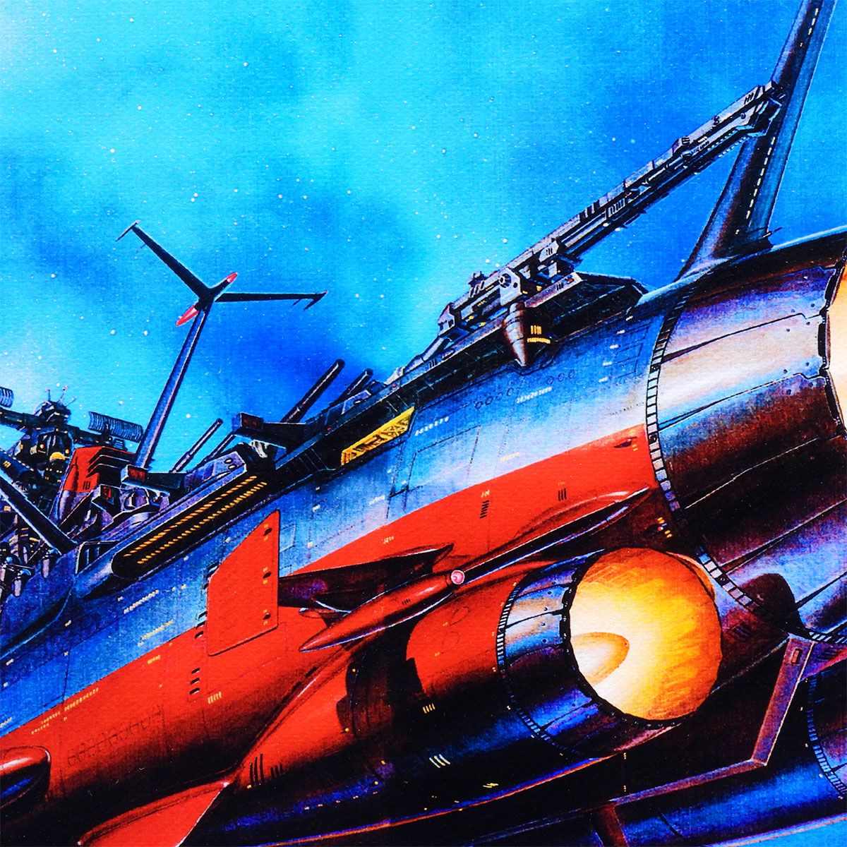 本作品は、青い宇宙を背景に、赤と黒の巨艦が斜めに突き抜ける『グレートヤマト』。