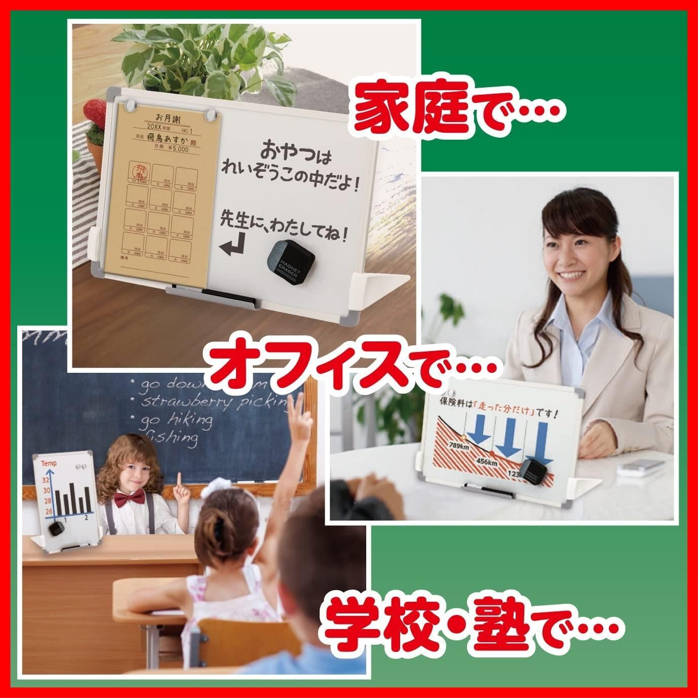 使い方は様々、ご家庭やオフィスでの書置きとしてはもちろん、ミーティングボードや説明用ボード、発表用ボードとしてもお使いいただけます。学校や塾、セミナーでのグループディスカッション後の発表用ボードとしても広く活用されています。