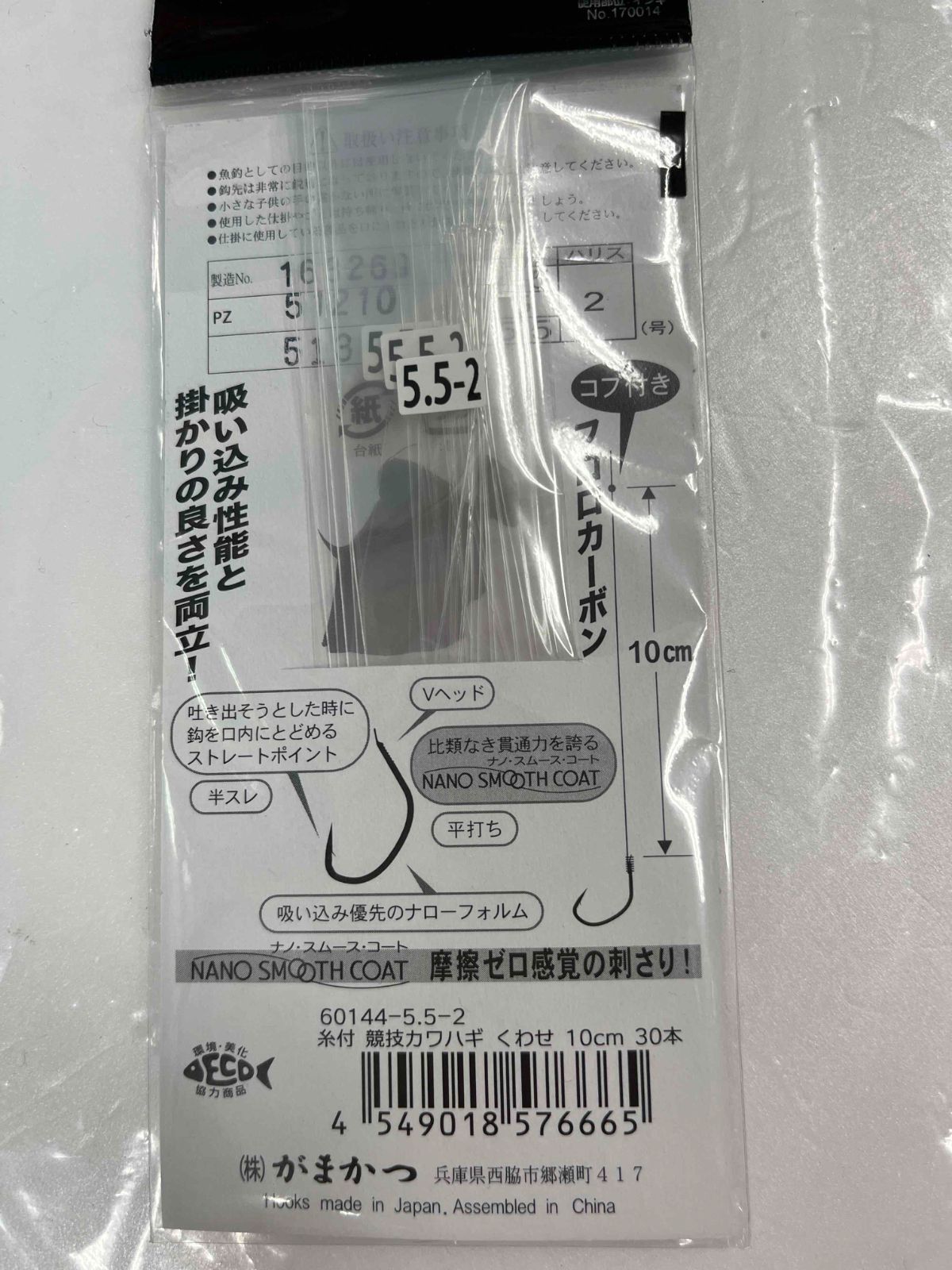 がまかつ★糸付 競技カワハギ くわせ 10cm 30本 針5.5号 ハリス2号【FK-146】