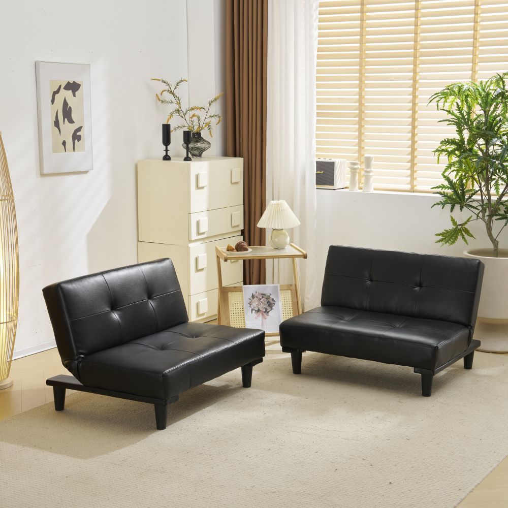【コンパクトなデザイン】2人掛けソファ:小さなお部屋にもぴったりフィットするサイズ感。背もたれ3段階調節可能で、お好みに合わせて角度を変えられ、より快適な座り心地を提供。