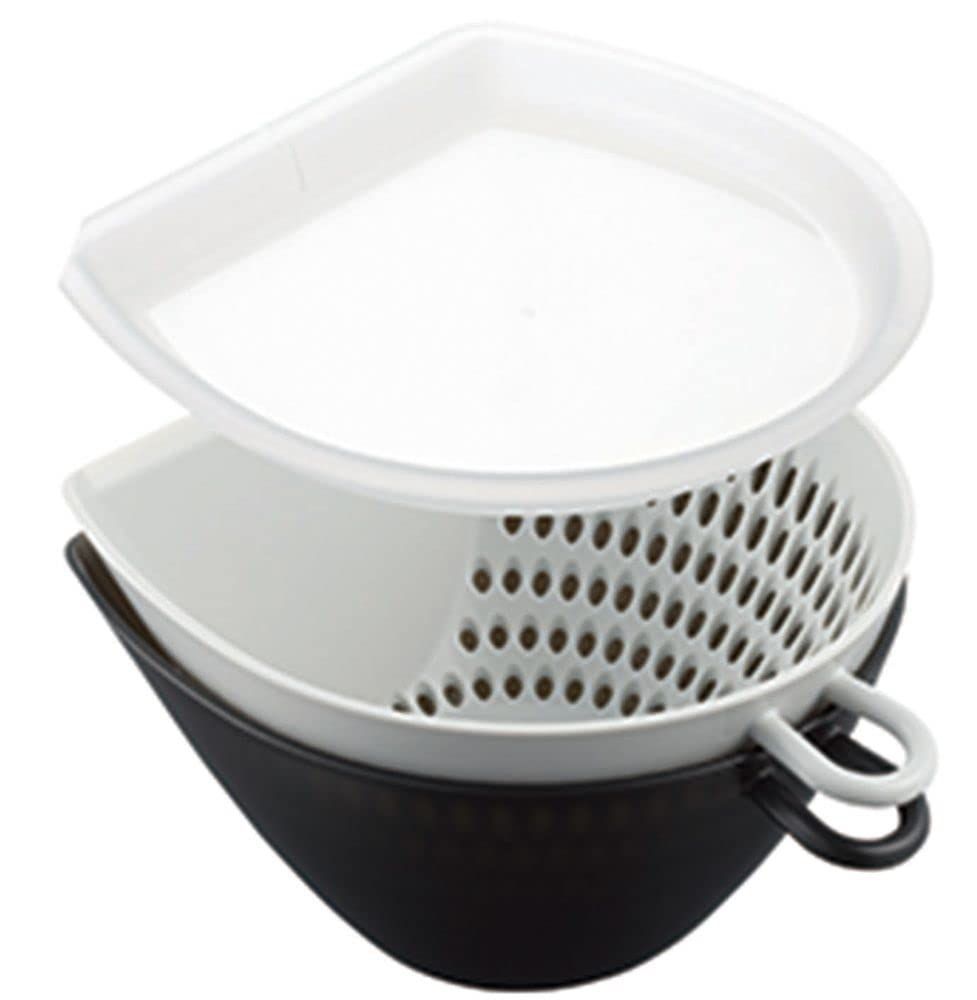 まな板の上で切った食材をサッと「チリトリ」できるザルとボウルです。 使い方がさらに広がるフタ付きタイプ。