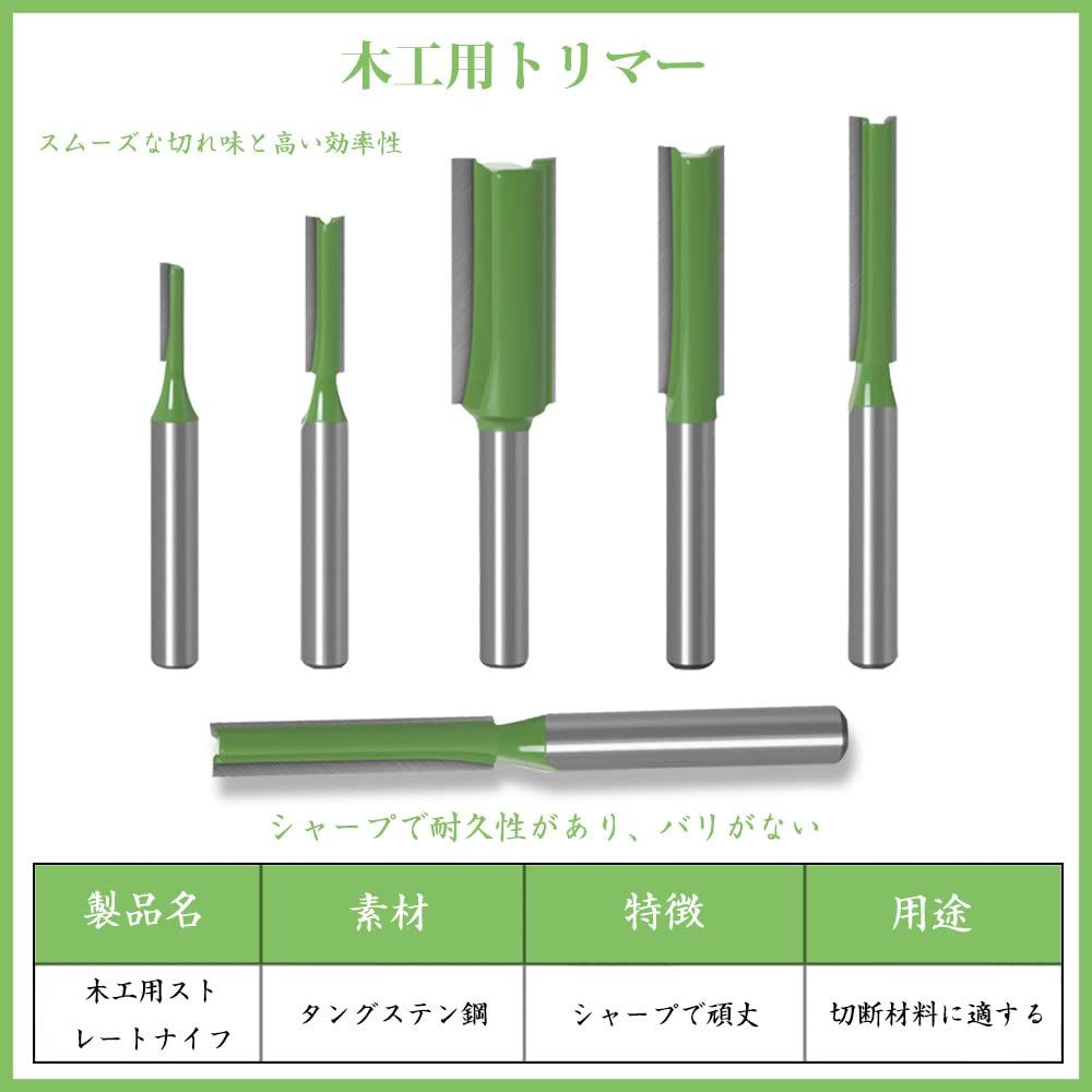 超硬ビット ルータービット トリマービット 舌・溝カッター シングル/ダブルフルートビット 切削工具 産業用カッター 木工用工具 ストレートカッター タングステンスチール 6mmシャフト 7本セット グリーン