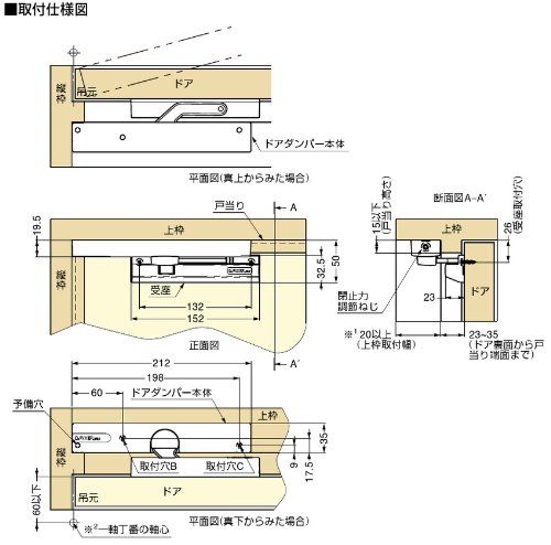 ドアダンパー本体の厚さはわずか20mmのため、ドア枠にすっきりと納まります。