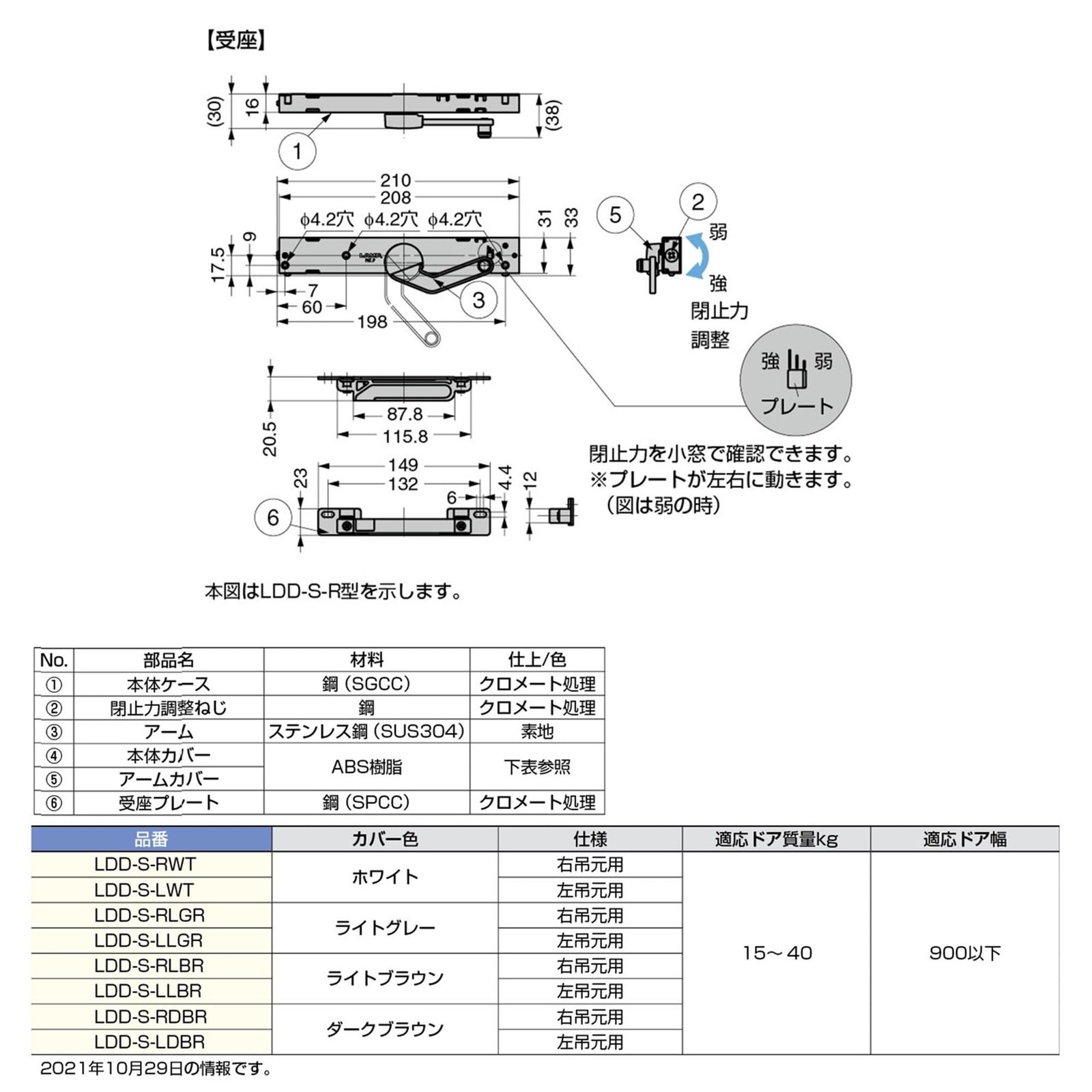 スガツネ工業 ドア用金物 LAMP ラプコンドアダンパー 面付 LDD-S-LLBR ライトブラウン 左吊元用