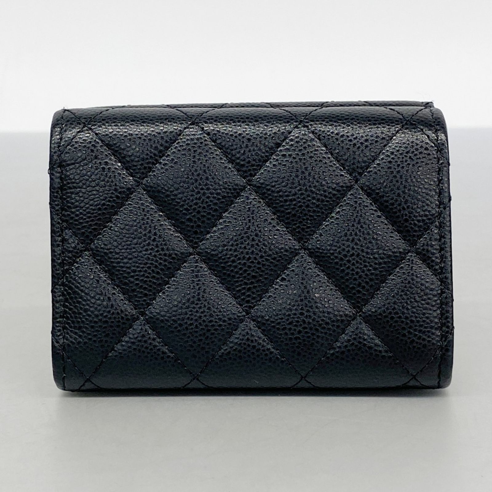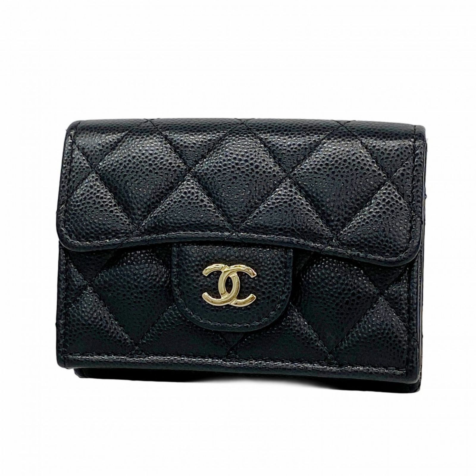 シャネル(Chanel) シャネル 三つ折り財布 マトラッセ キャビアスキン ブラック シャンパンレディース P1896026