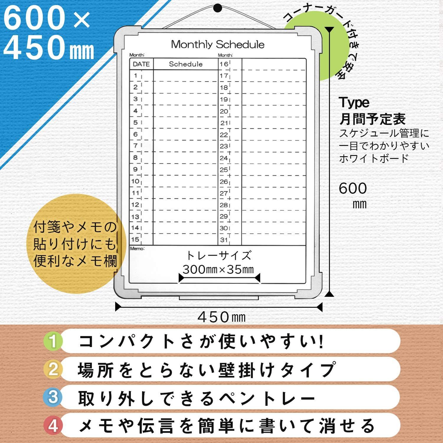 サンケーキコム ホワイトボード 樹脂枠 月予定 タテ型 450mm×600mm WB-6045-MT