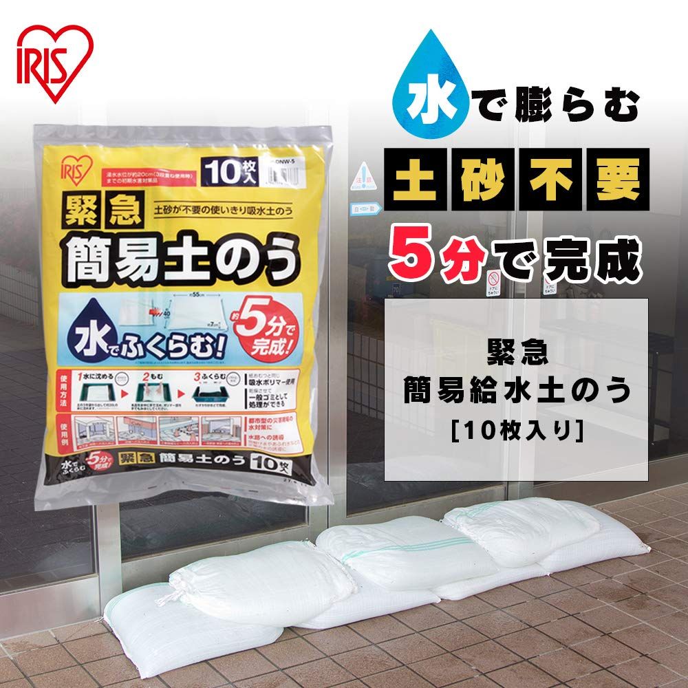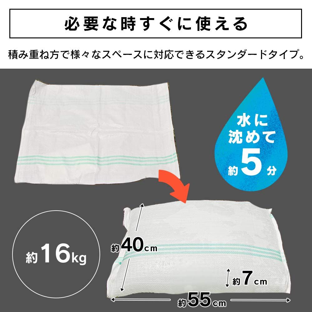 タイプ : 水を含むと膨らむ、土砂が不要の給水簡易土のう