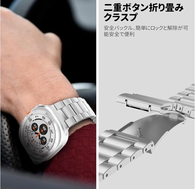 バンド with Samsung Galaxy Watch Ultra 47mm 金属ステンレススチール バンド ストラップ 隙間なし 長さ 調整可能 男性 女性