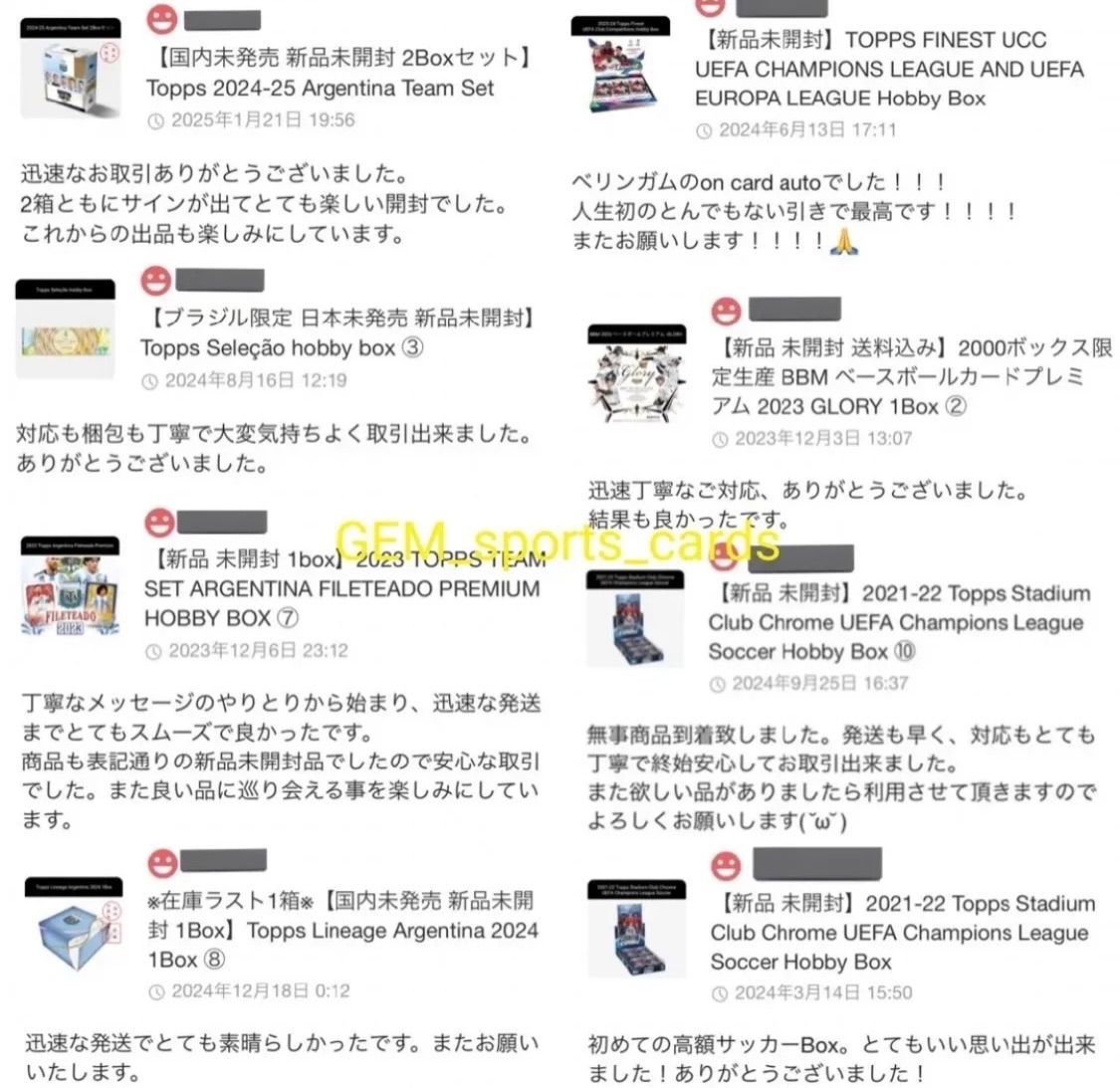 」が新登場。シリアルカードも2枚含まれており、低価格ながらランダムにサインカードが含まれていることもある手軽に楽しめるシリーズとなります(サインは確定ではございません。おそらくカートンに数枚の低確率だと思われます)。サインリストにはメッシ、ロナウジーニョ、ヤマル、アンリ、イニエスタ、ファブレガスといった錚々たるメンツとなります。