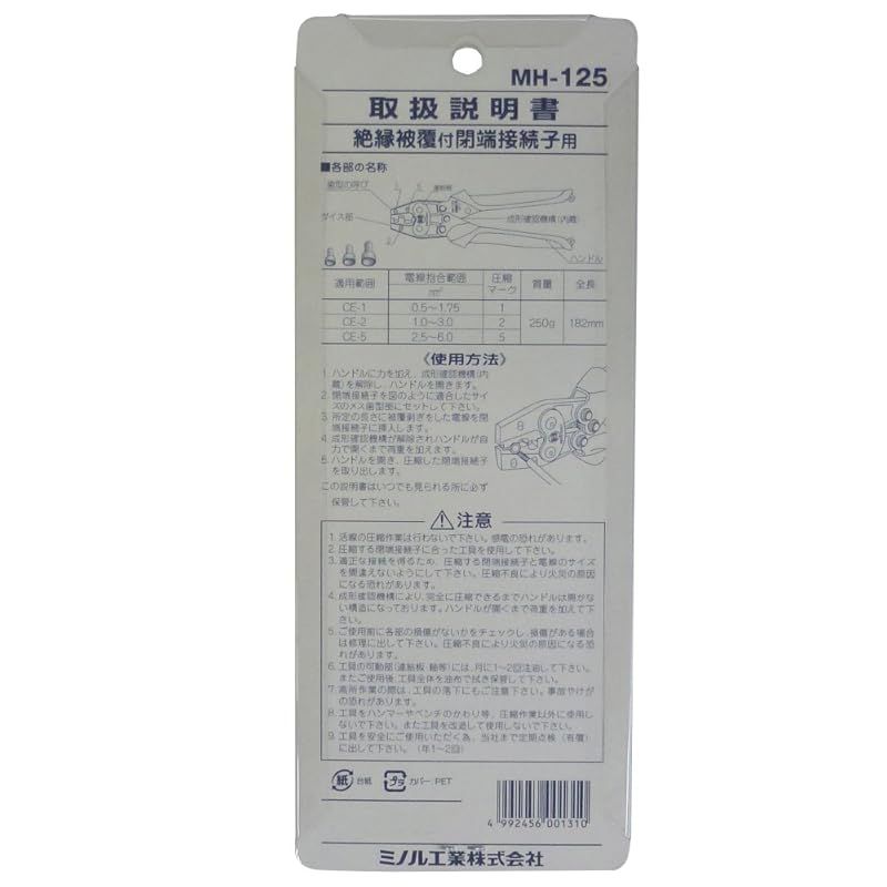 商品名:マーベル(MARVEL) 圧着工具 ハンドプレス 絶縁被覆付閉端接続子用 MH-125