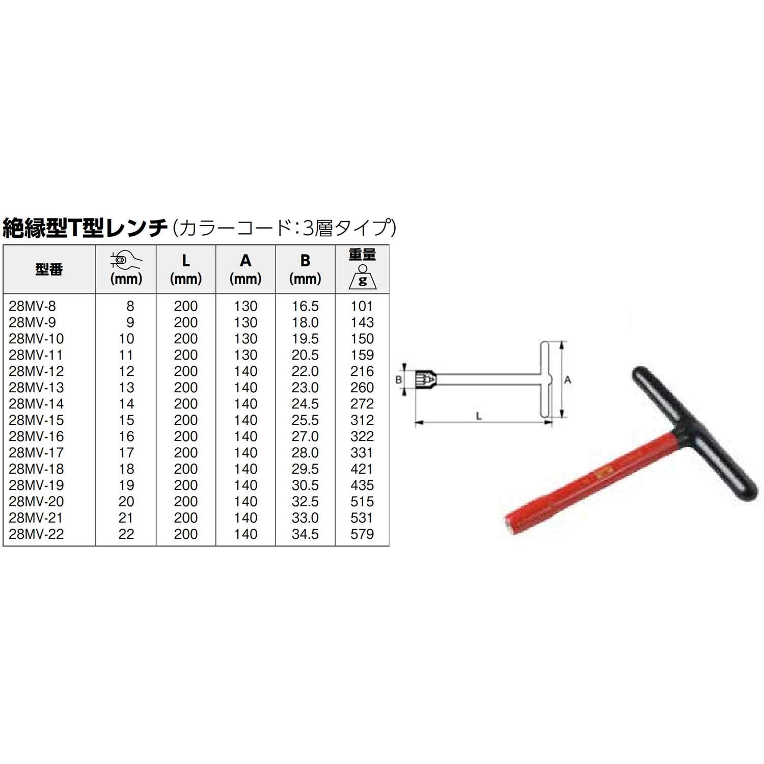 BAHCO(バーコ) Insulated T-Socket Wrench 1000V絶縁仕様T型ソケットハンドル 22mm 28MV-22
