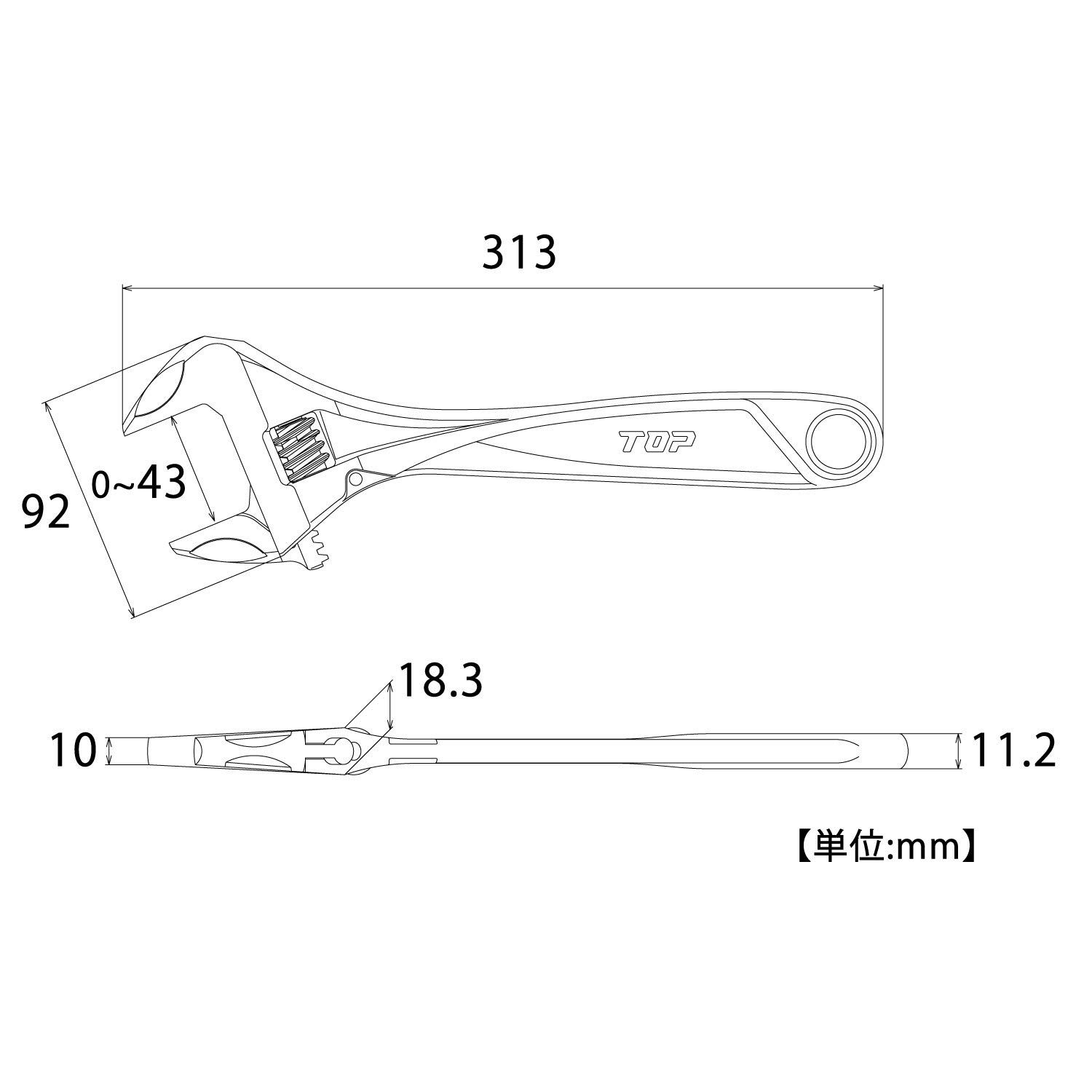 トップ工業 (TOP) ガタ無しモンキーレンチ ワークワイド 口開き0~43mm ガタ無しウォーム搭載 HM-43M 燕三条 日本製