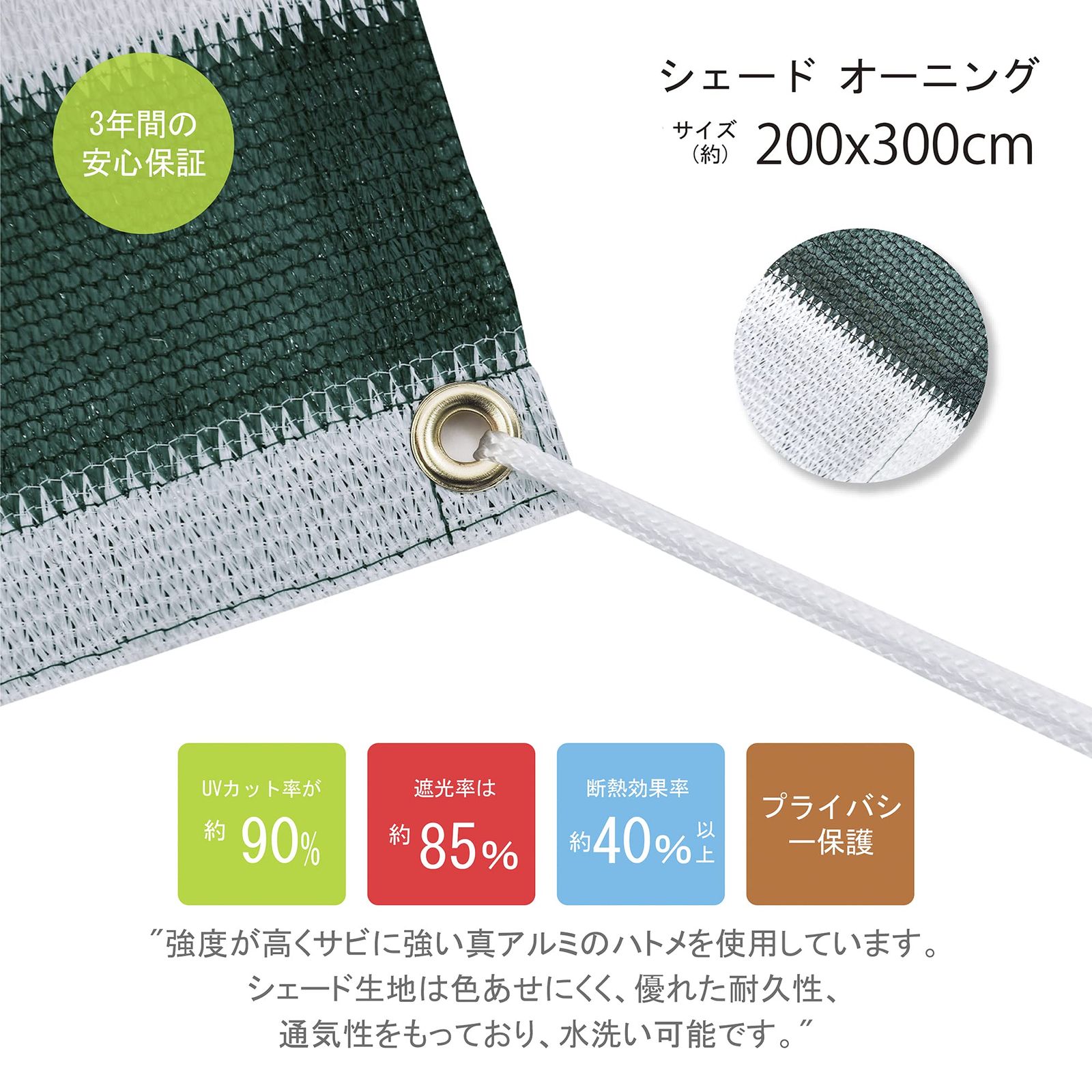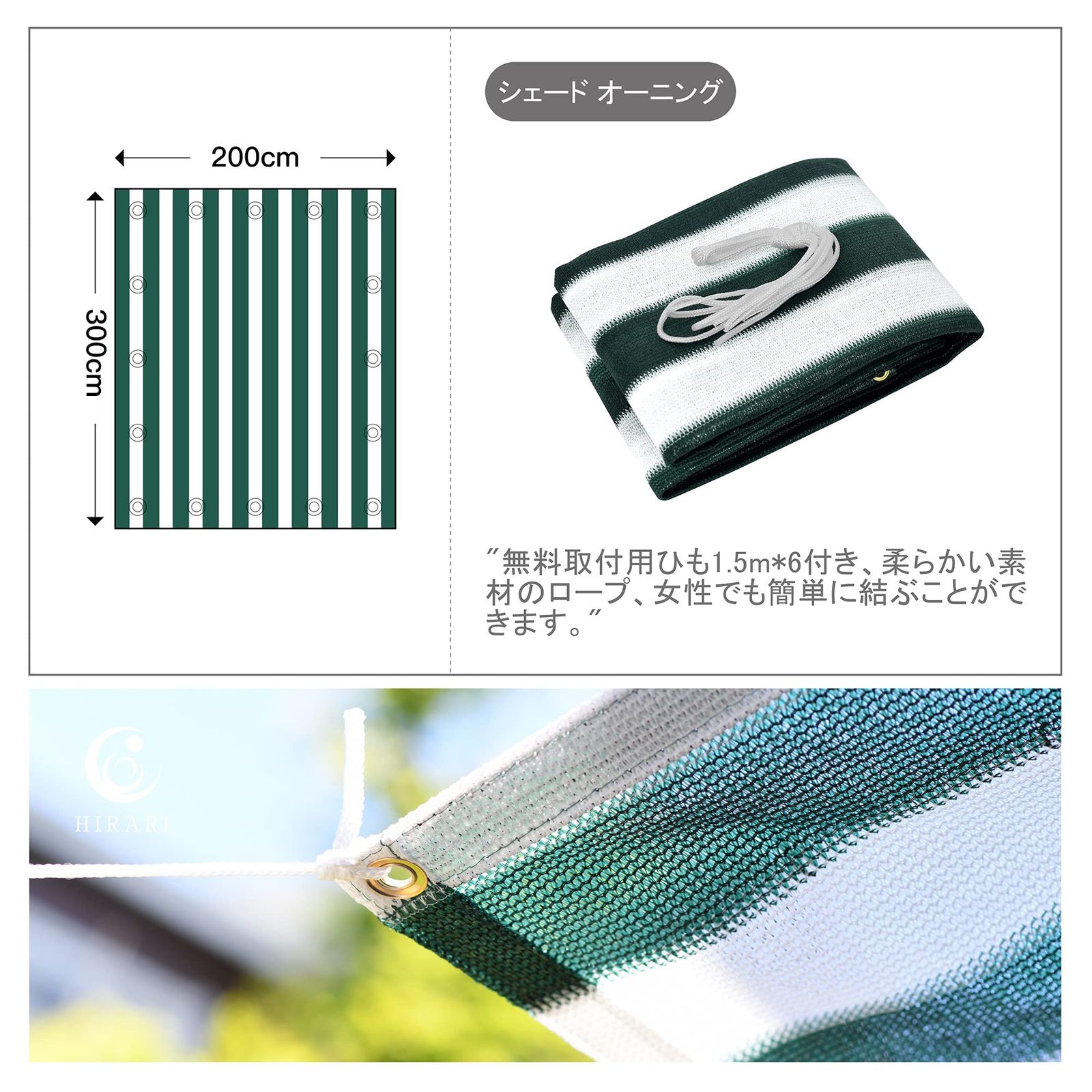 HIRARI 日よけ シェード 日除け シェード オーニング 簡単設置 (200×300cm) グリーン・ホワイト