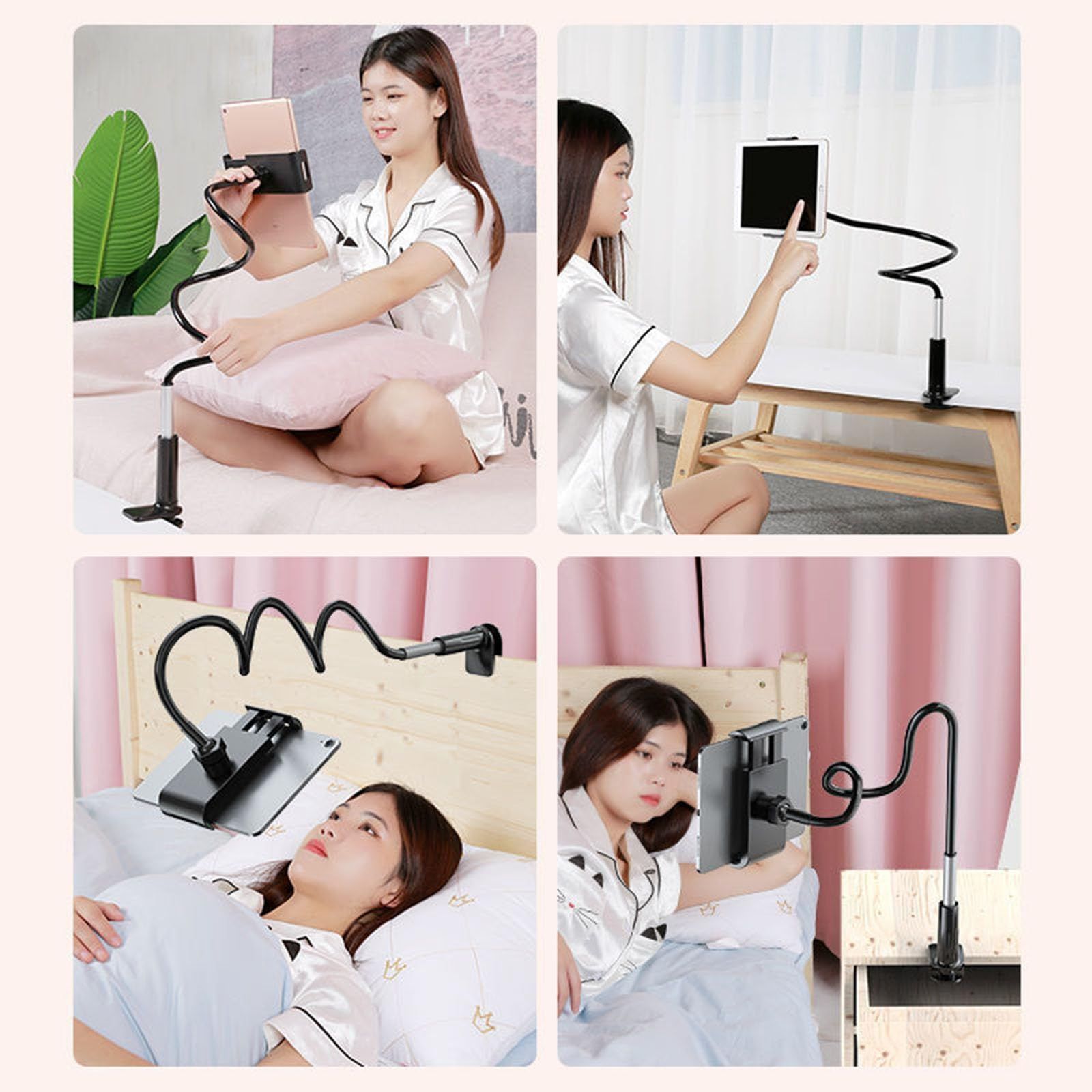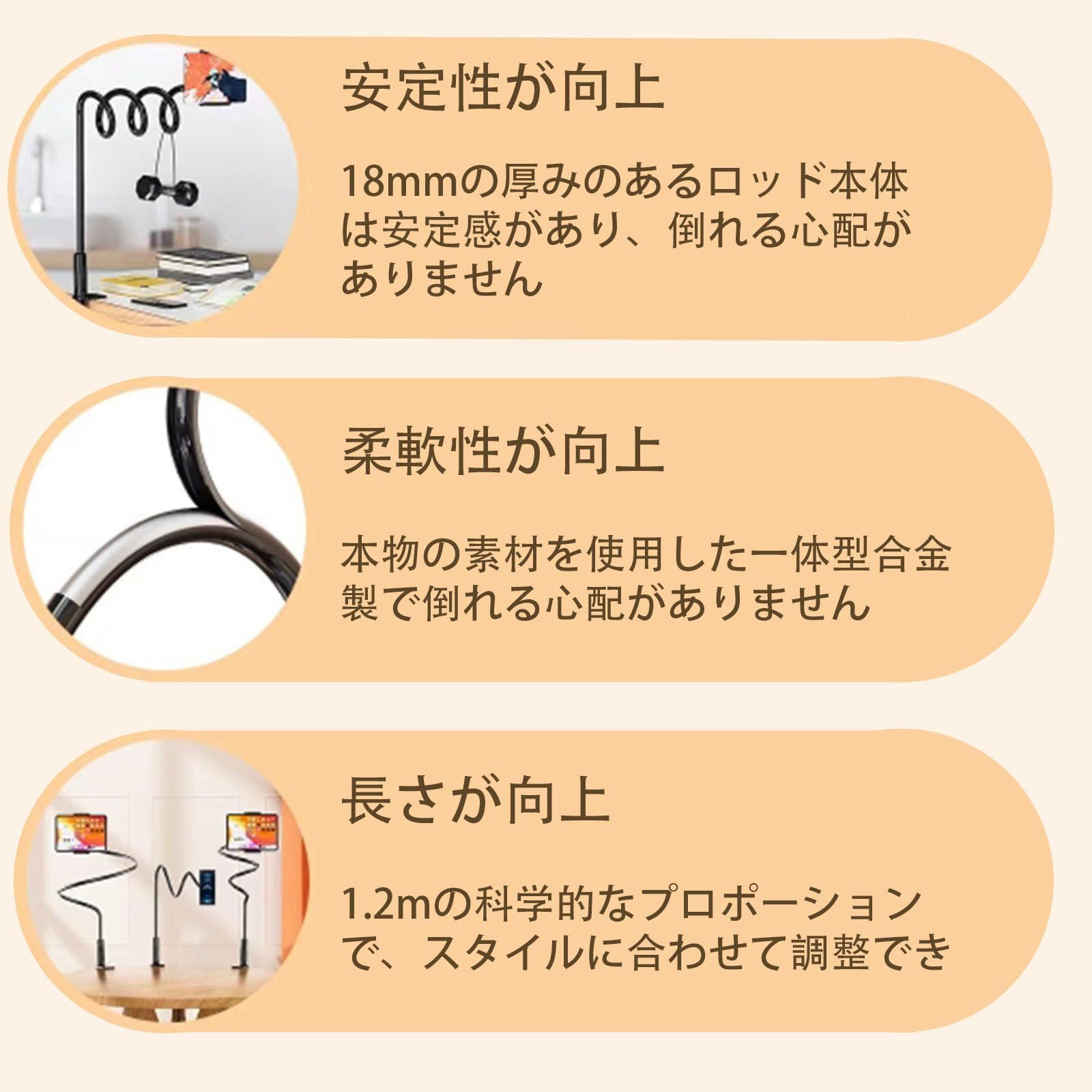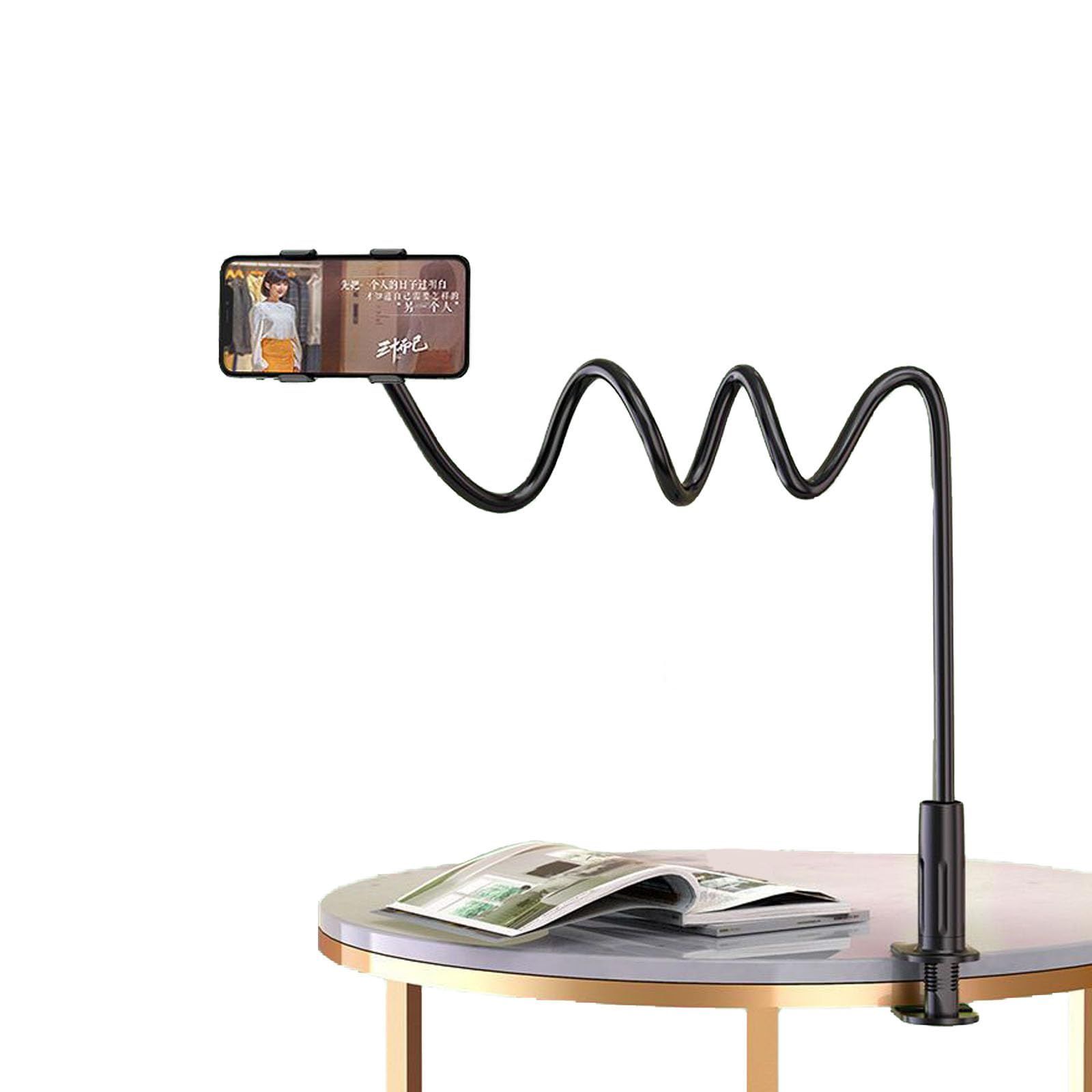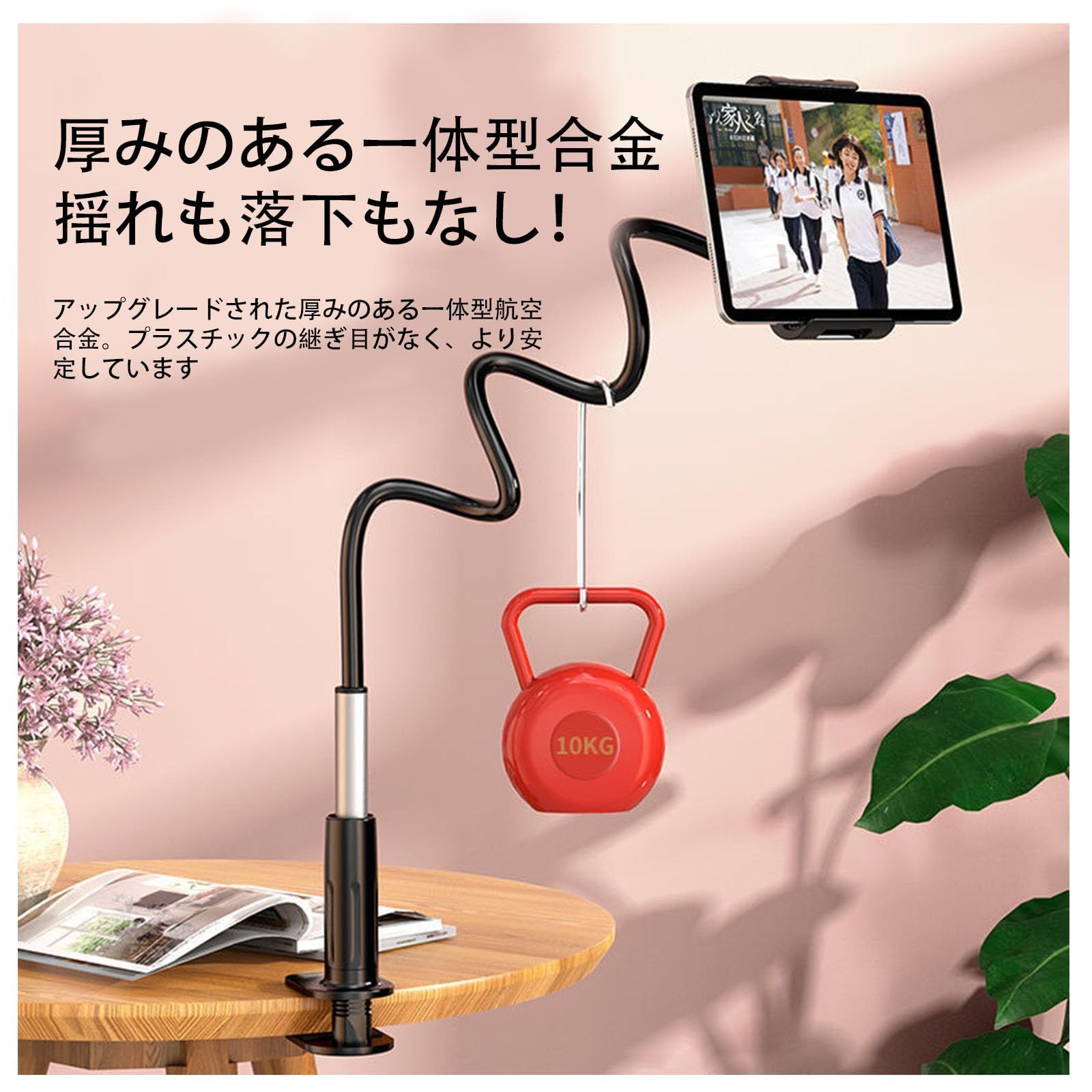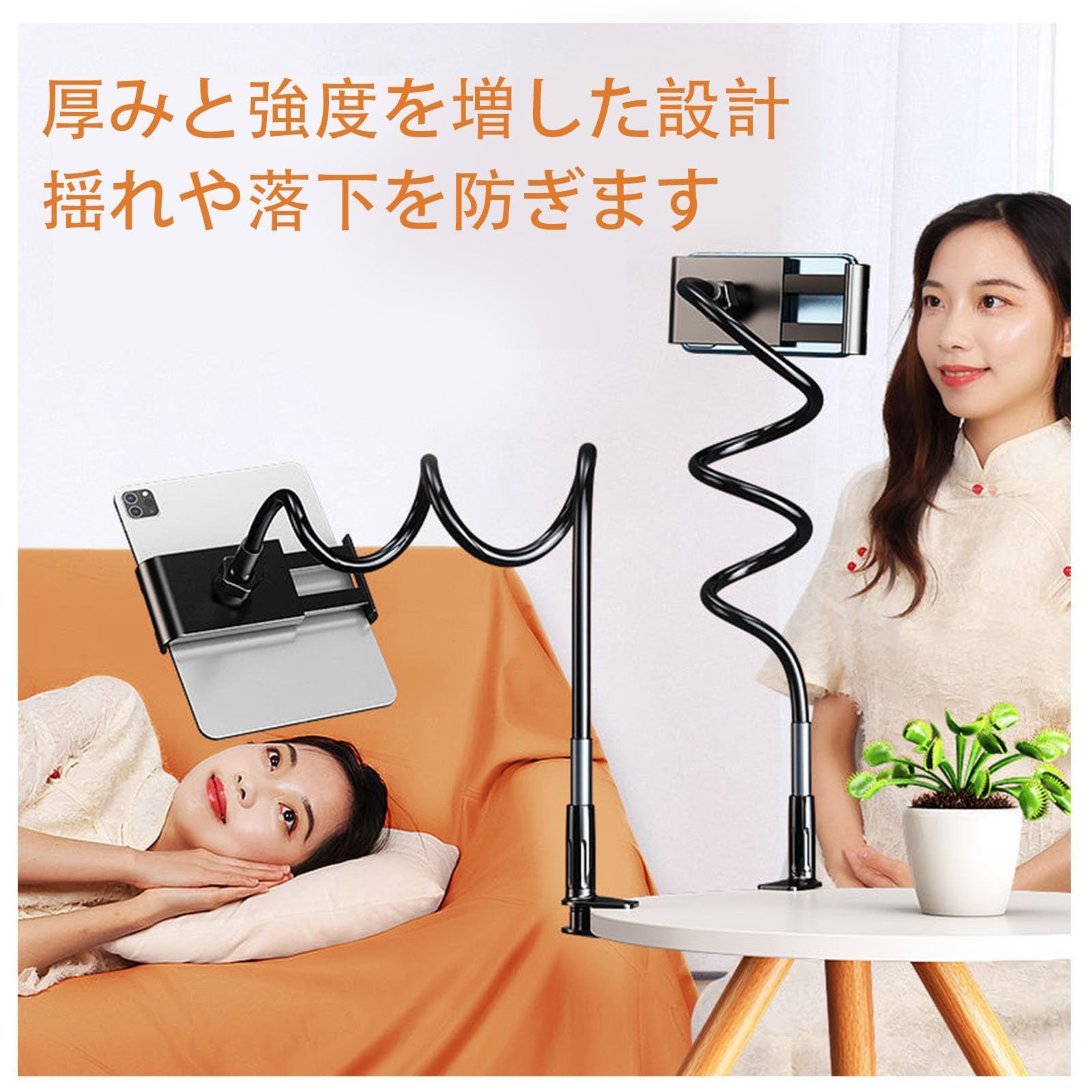スマホスタンド 金属アーム 360°調整可能 クランプ式 ベッド用 机/デスク対応 EVA 滑り止め i-Phone/Android全機種対応 (3.5-10インチ) ブラック 1.2M