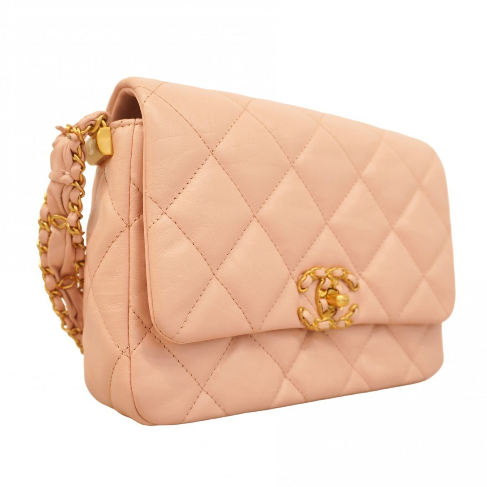 シャネル(Chanel) シャネル ショルダーバッグ マトラッセ チェーンショルダー シャネル19 ラムスキン ピンク レディース