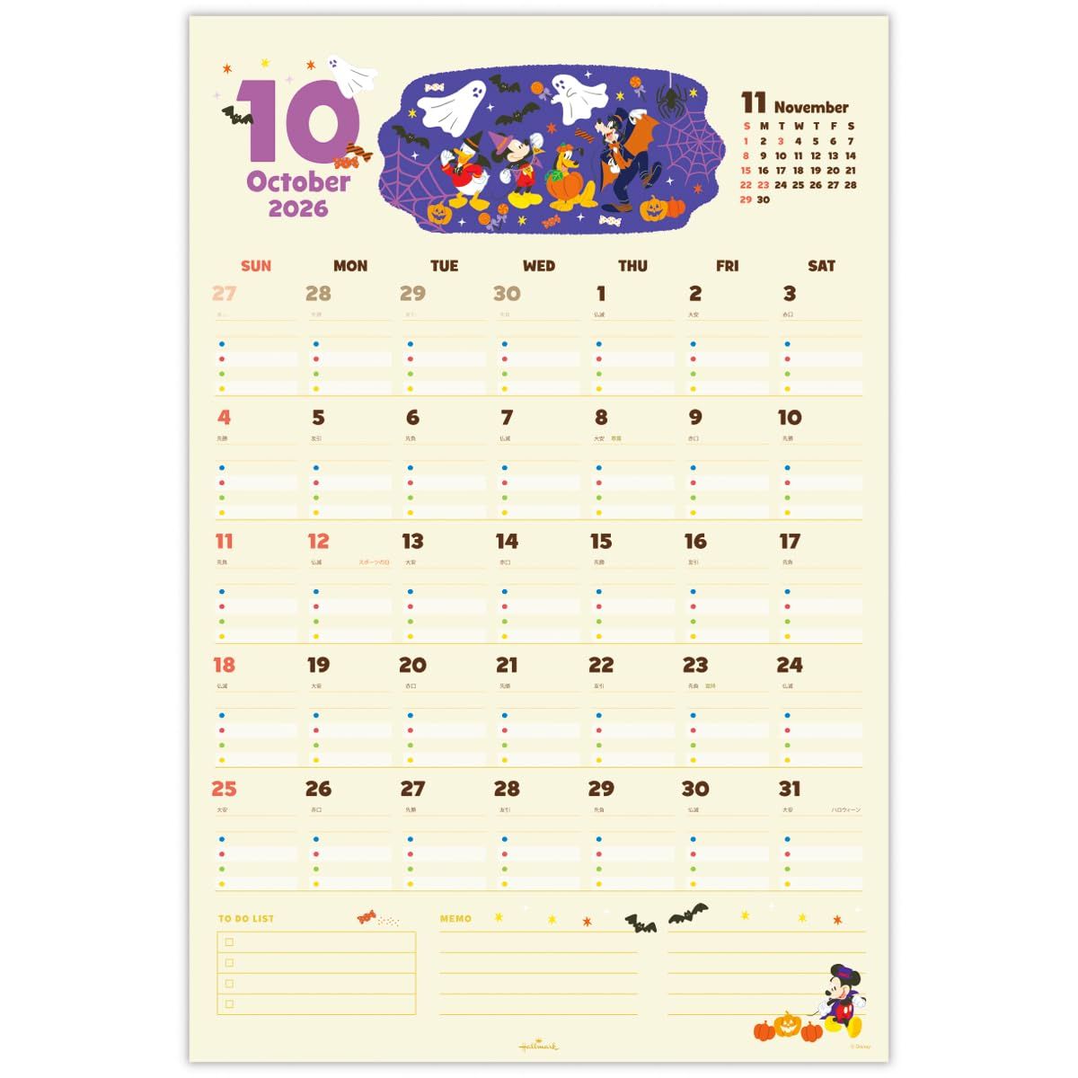 【サイズ】460×304mm【枚数】表紙1枚 本文12枚【仕様】シール付き/ツインリング綴じ/六曜・二十四節気付き/台紙付き/祝日表記:日本語/12ヶ月絵柄情報シート1枚【その他】4つの色分けで家族の予定を見える化できる便利なファミリーカレンダー。アレンジシール付きなので、家族の記念日やイベントをにぎやかに飾ることができます。(C)Disney