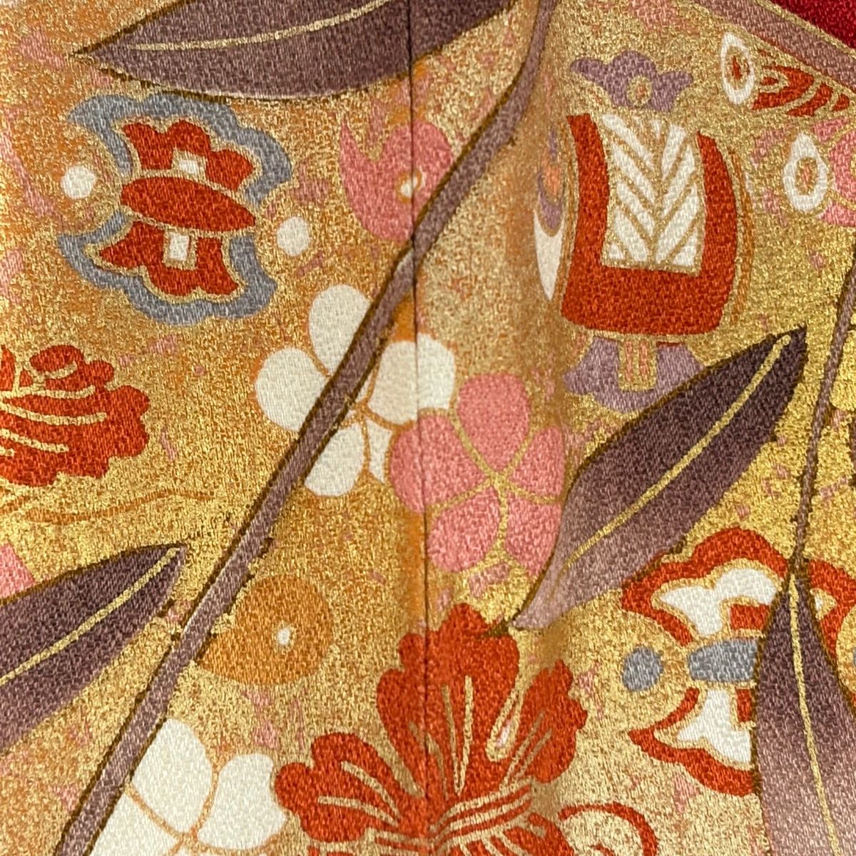 衿周りや両袖口中に薄汚れ、表地所々にシワ、表地所々に金彩の剥がれがございます。