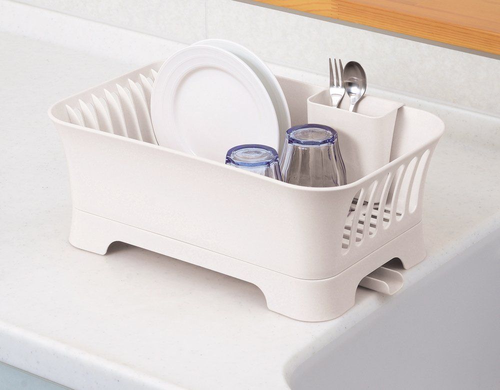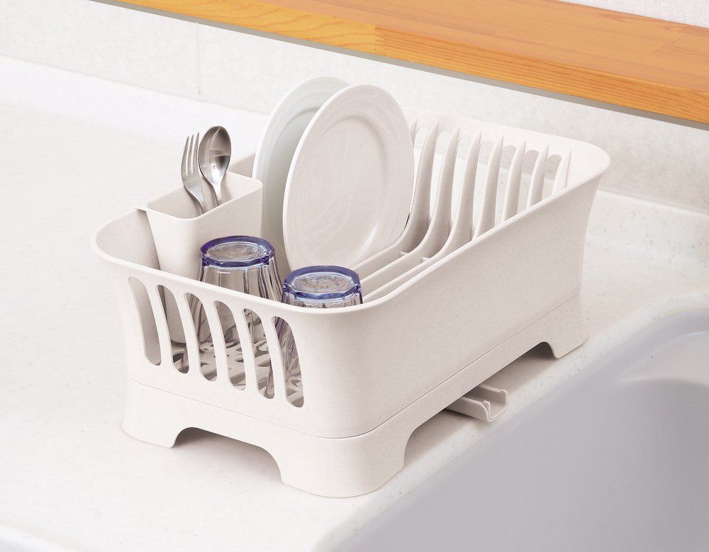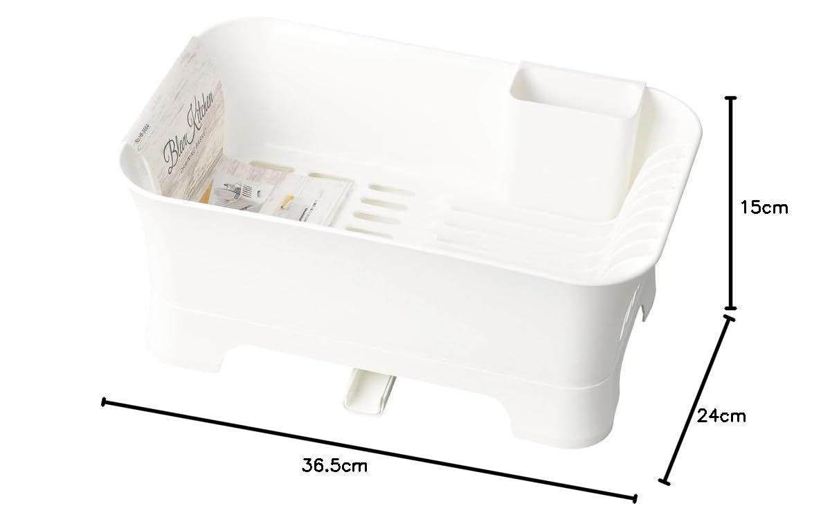 パール金属 食器 水切り かご 水切りバスケット 水が流れるトレー 日本製 プラスチック製 ブランキッチン HB-3664ホワイト(約)幅24×奥行36.5×高さ15cm(ポケット含まず)
