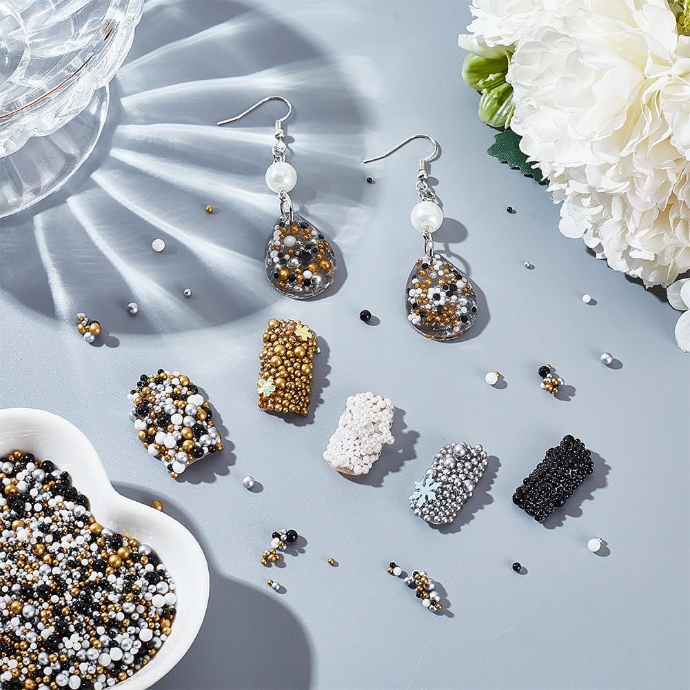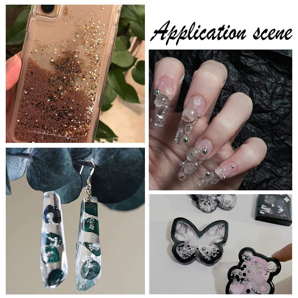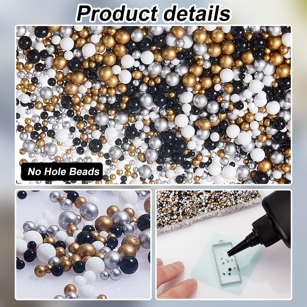 メタリックカラー:ゴールド、ブラック、シルバー、ホワイト、これらのビーズは、工芸品、UVレジン工芸品、ジュエリー作り、ネイルデコレーション、携帯電話ケースのデコレーションなどに使用できます。 ご家族やご友人へのプレゼントとして、この完璧なバブルビーズであらゆる種類の工芸品を作ることができます。