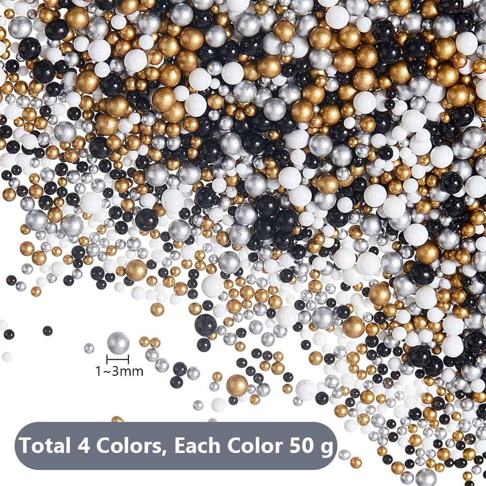 PH PandaHall 200g ガラスビーズ 穴無し レジン ビーズ デコパーツ レジン封入 小さな 光沢 丸玉 ネイルアートパーツ パール アートパーツビーズ 4色 ハンドメイド アクセサリーパーツ 装飾ボールアート用 1~3mm